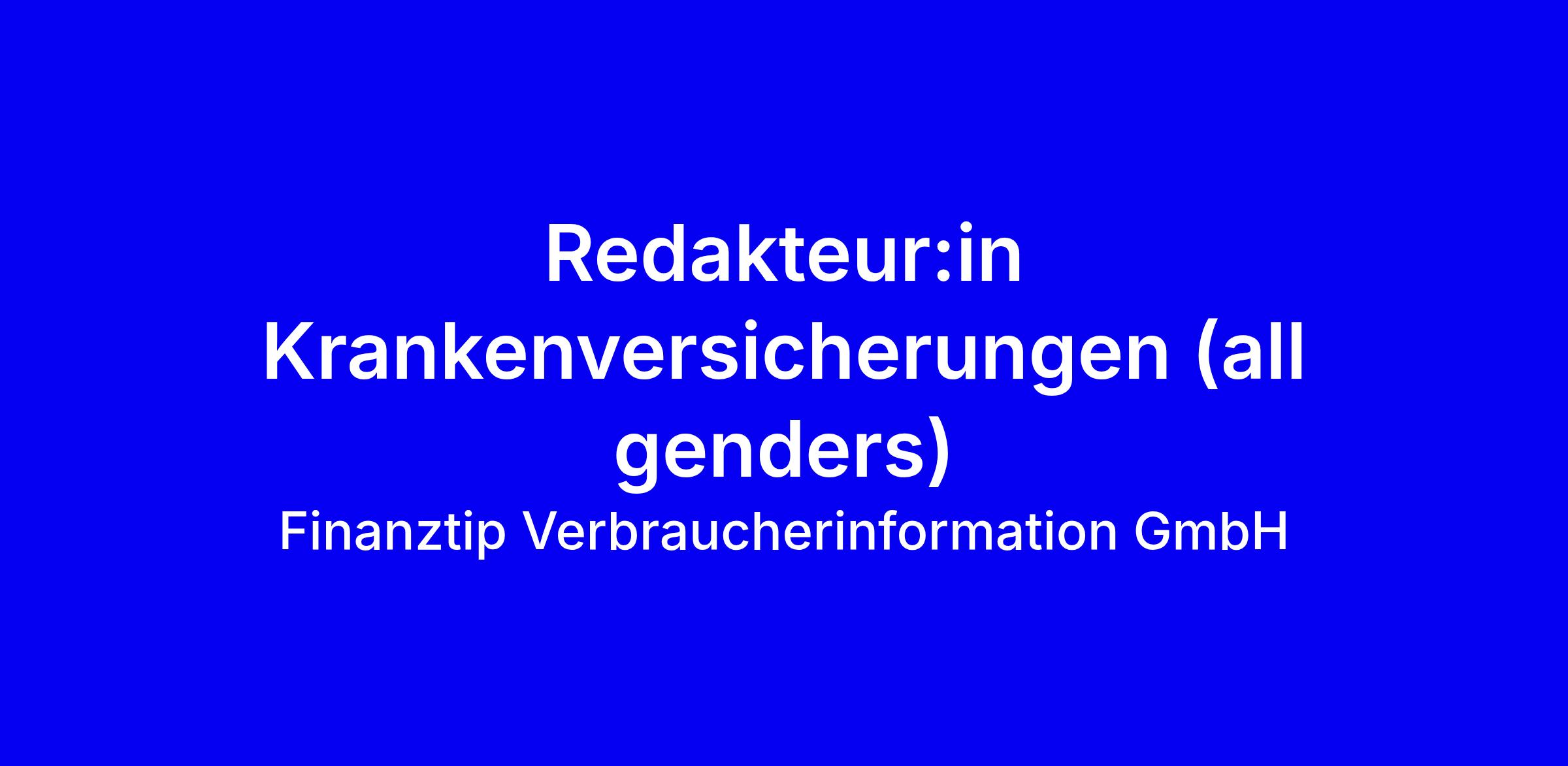 Finanztip sucht eine Redakteur:in Krankenversicherungen am Standort Berlin, Vollzeit, onsite, um den Gesundheitsbereich mit fachlich fundierten Inhalten, Analysen und Produktideen weiter auszubauen. Du entwickelst hochwertigen Content rund um Krankenversicherungen, planst Tests, setzt Analysen um und wirkst an eigenen Tools wie Rechnern und Anbietertabellen mit, um nutzerzentrierte Angebote zu schaffen. Wichtig sind journalistische Exzellenz, solides Verständnis wirtschaftlicher Zusammenhänge im Gesundheitswesen, analytische Stärke, strukturierte Arbeitsweise, Teamfähigkeit und Erfahrung im Produktmanagement. Bring Kreativität, Lernbereitschaft für neue Technologien und KI-Tools mit. Wir bieten attraktive Benefits, darunter Workation, Mittagessenzuschuss, einen freien Tag für Engagement in der finanziellen Bildung sowie moderne Büros in Berlin und München. Bewerbe dich mit konkreten Arbeitsproben, zeige, wie du Leserinnen und Leser wirklich abholst, und liefere eine erste Idee für neue Formate.