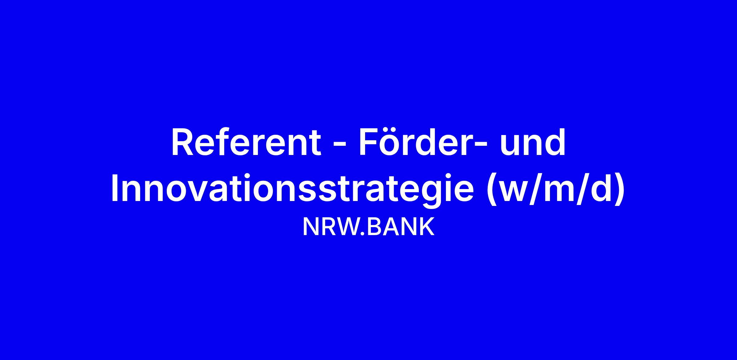 NRW.BANK sucht eine engagierte Referentin oder einen Referenten für Förder- und Innovationsstrategie in Düsseldorf. In der Abteilung Transformation & Innovation gestalten Sie die strategische Ausrichtung, analysieren Daten, bereiten Ergebnisse zielgruppengerecht auf und tragen zur Weiterentwicklung der Förderstrategie sowie zum Stakeholdermanagement bei. Voraussetzungen: abgeschlossenes Studium in Wirtschafts-, Kommunikations- oder vergleichbarer Fachrichtung, starkes strategisches Denken, ausgeprägte analytische Fähigkeiten, Kommunikationsstärke, sicher in Deutsch und Englisch, Erfahrung in der Vermittlung komplexer Themen, Kooperationsfähigkeit und Freude am Aufbau neuer Strukturen. Nutzen Sie Kanban und moderne Tools; zeigen Sie konkrete Projekte auf. Bewerbung online, Ansprechpartner: Andreas Voß. Wir bieten flexible Arbeitszeiten, Homeoffice, Entwicklung, Deutschlandticket, Jobrad und eine wertschätzende Unternehmenskultur.