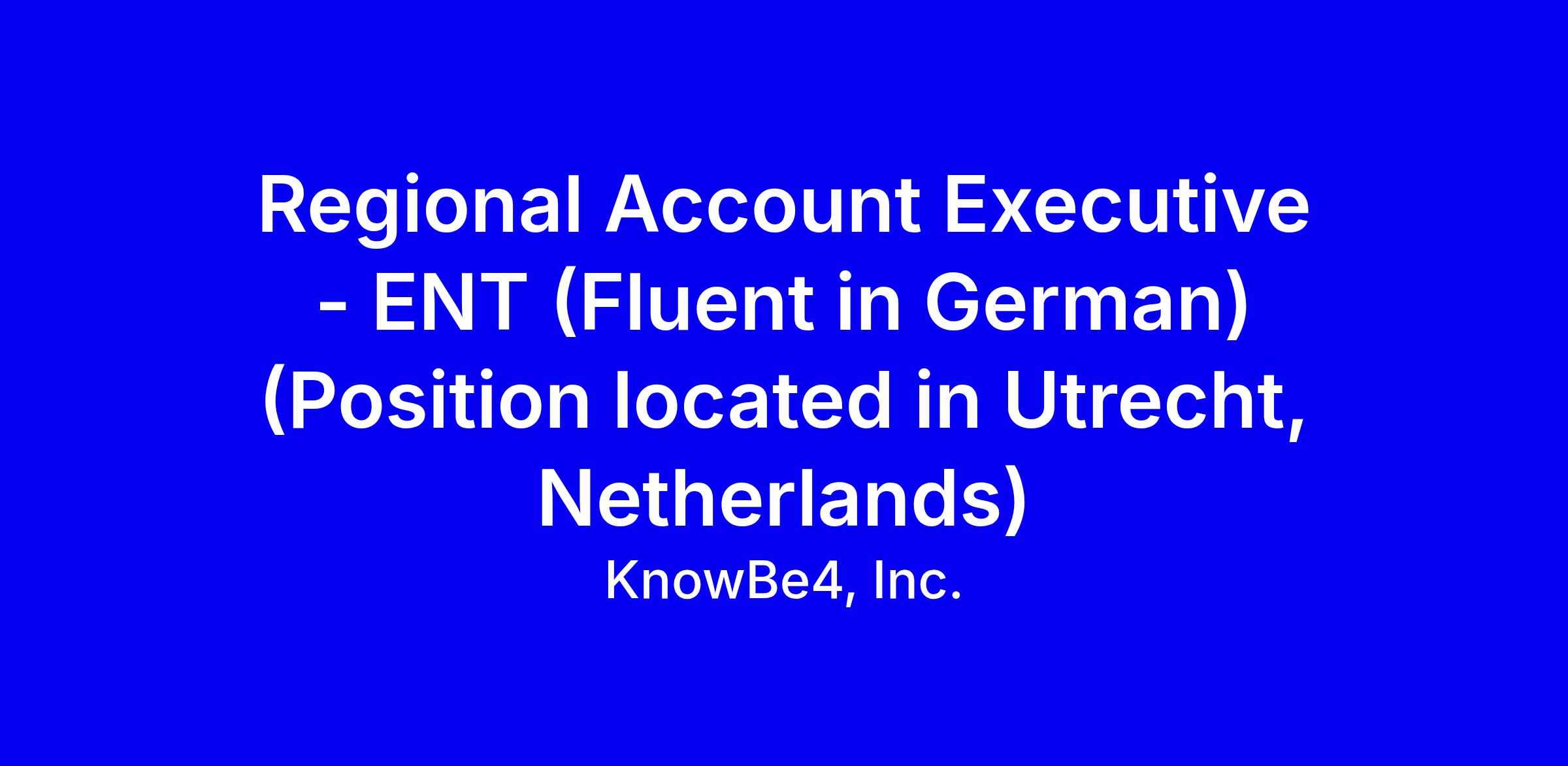 KnowBe4 is seeking a Regional Account Executive for ENT (Fluent in German) in Utrecht on a hybrid schedule. You will acquire enterprise accounts and expand existing ones by promoting KnowBe4’s security awareness and risk management products, building a pipeline, delivering demos, and driving ARR through multi-year deals. You will follow up on inbound leads, collaborate with Channel partners and Customer Success to maximize renewals, and maintain accurate Salesforce records. Ideal candidates have 3+ years selling to enterprise customers, strong communication, a metrics-driven mindset, and IT security familiarity. Tips for applying: tailor your English resume, quantify wins, show German market experience, highlight cybersecurity context, and demonstrate pipeline management and cross-functional collaboration.