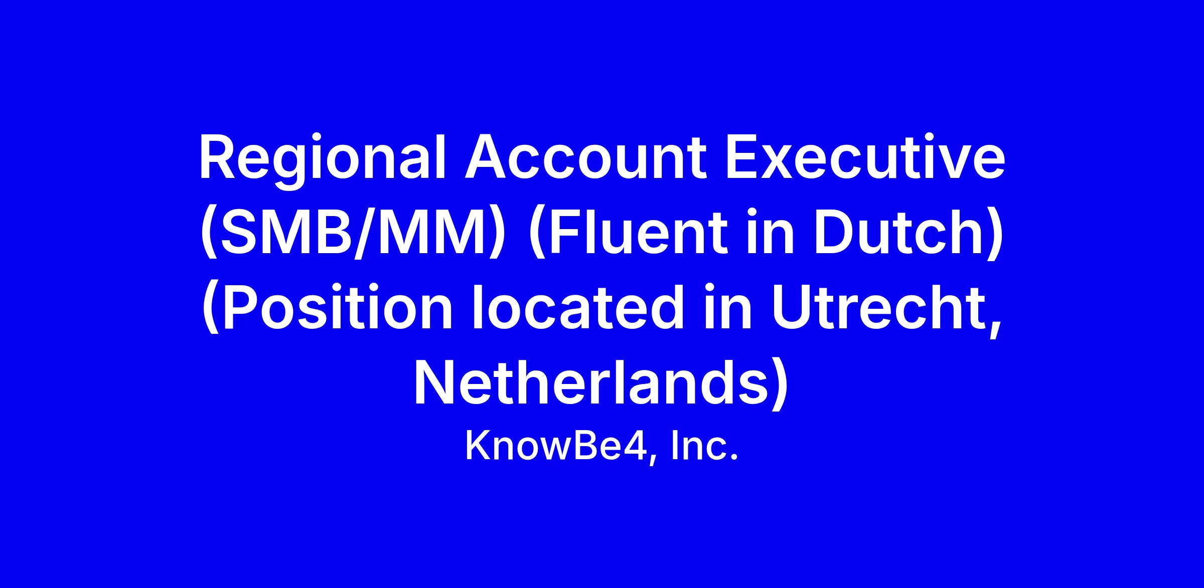 KnowBe4 is seeking a Regional Account Executive for SMB/MM in Utrecht to acquire new logos and upsell within existing SMB/MM accounts, driving ARR through proactive prospecting, inbound follow-up, and compelling product demos. You will build a pipeline, qualify deals, shorten sales cycles, and collaborate with Channel, Customer Success, and Renewal teams to maximize growth. The ideal candidate has 2+ years selling to SMB/MM, is Dutch-fluent, data-driven, and comfortable negotiating multi-year deals, with Salesforce and cybersecurity experience preferred. Benefits include performance bonuses, training, and tuition reimbursement. Apply with an English resume highlighting quota attainment, Dutch proficiency, Salesforce use, and cross-sell success; be prepared for an assessment and background check; no agencies.