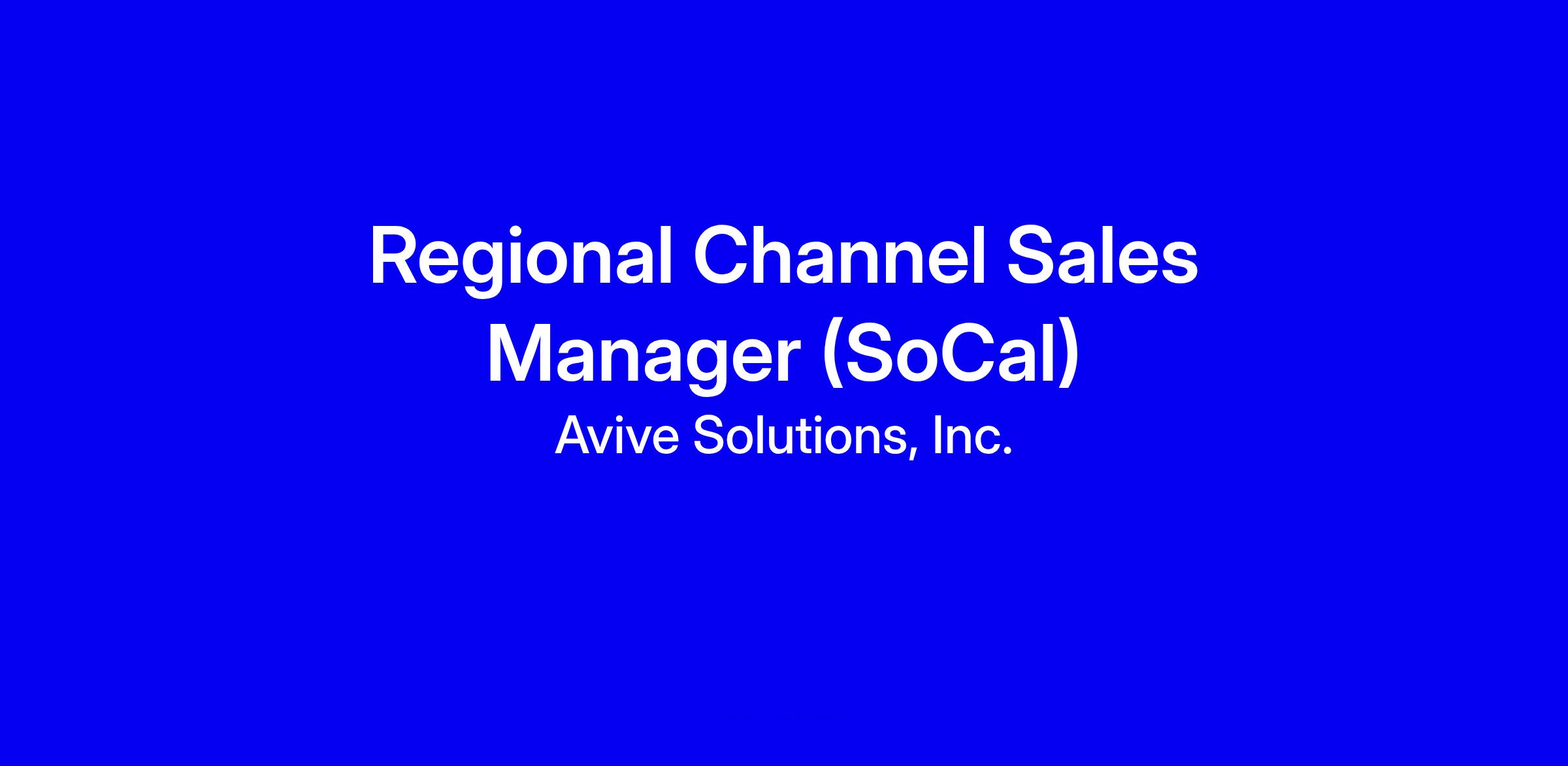 Avive Solutions is hiring a Regional Channel Sales Manager for Southern California to build and enable partner-driven growth. This full-time onsite role in Orange County centers on managing channel relationships, joint selling, onboarding and training, and driving brand adoption while hitting regional KPIs and contributing to national outcomes. Expect 50 to 60% travel, a fast paced environment, and a mix of software as a service and hardware sales. The ideal candidate has 5+ years channel/partner management, 3+ years direct selling, proven enablement skills, and a hands-on field presence. To apply, tailor your resume to quantify pipeline impact, partner trainings delivered, and regional wins, demonstrate SoCal market knowledge, and show adaptability to shifting strategies.