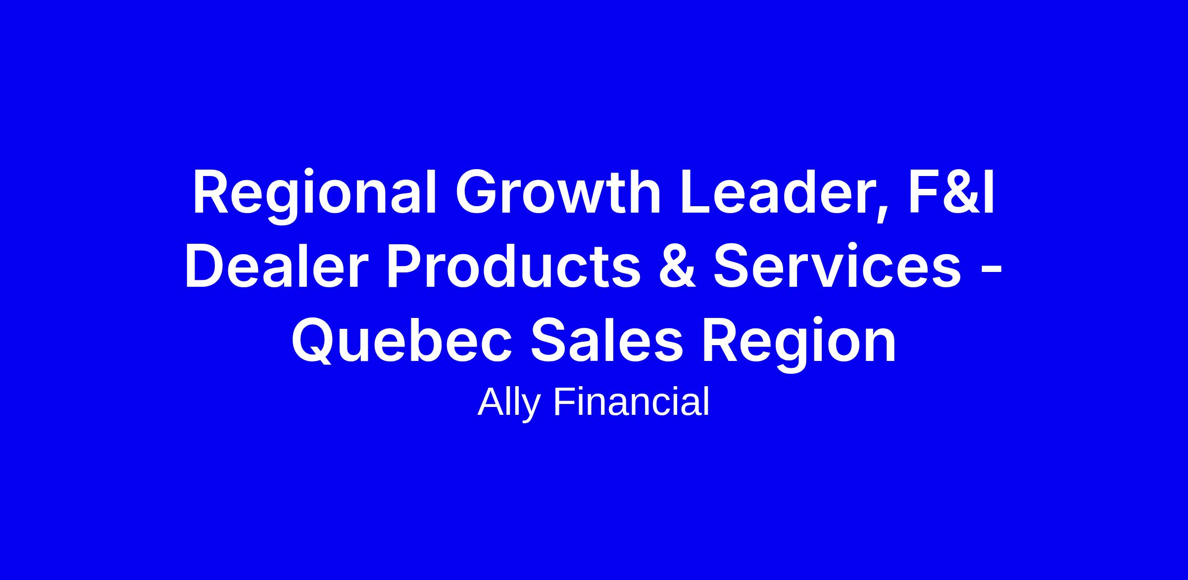 Ally Financial is seeking a Regional Growth Leader for F&I Dealer Products & Services in the Quebec Sales Region. The role drives new and existing F&I business across franchised dealers in Quebec, requires about 50% travel, a company vehicle, and eligibility to work in Canada with residence within an hour of Quebec City or Montreal. You’ll build territory plans, educate dealer teams on Ally’s F&I offerings, close opportunities, and collaborate with cross functional account teams to grow the pipeline. Ideal candidates have 7+ years of relevant experience, dealership or automotive B2B sales, bilingual in French and English, and strong relationship selling. Tips: tailor your resume to quantify results, cite specific F&I products, and craft a cover letter that shows you understand dealer needs and Ally’s customer first approach.