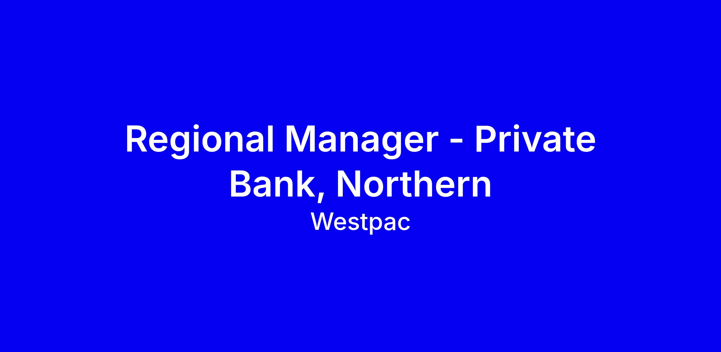 Regional Manager - Private Bank, Northern