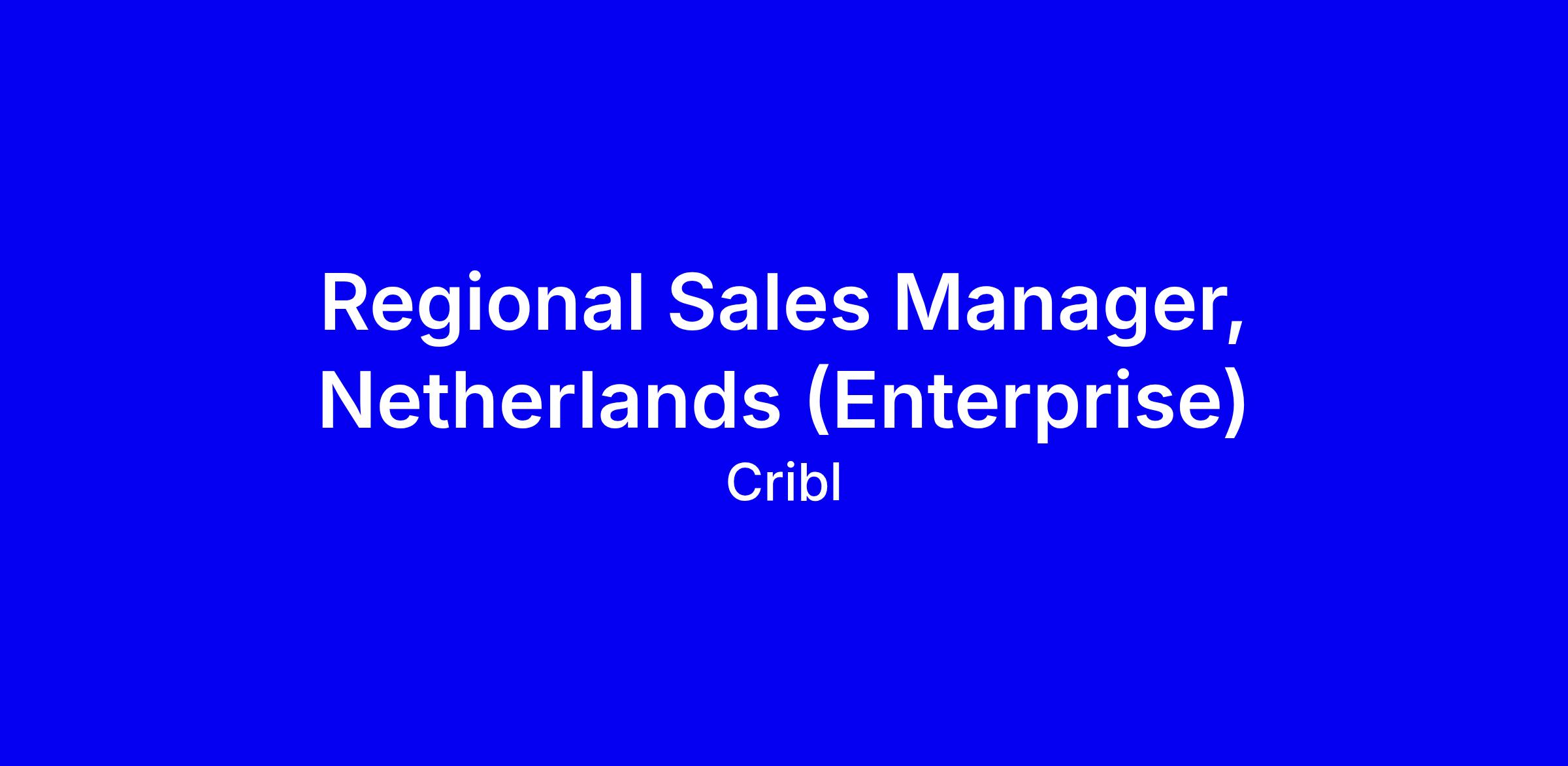 Cribl is seeking a Regional Sales Manager for the Netherlands (Enterprise) to own the full sales cycle in a remote-first environment, partnering with security and IT stakeholders from engineers to CxOs, and to overachieve against enterprise targets while keeping customers first. The role rewards a 7+ year track record selling into Fortune 1000, including 7-figure deals, new logos, and channel motions, with MEDDIC discipline, ideally with startup or entrepreneurial experience in SIEM and Observability. To apply, tailor your resume to quantify pipeline and wins, show territory planning and demand creation, highlight Netherlands market familiarity, and note time-zone flexibility and remote collaboration strengths. Cribl values diversity and customer focus.