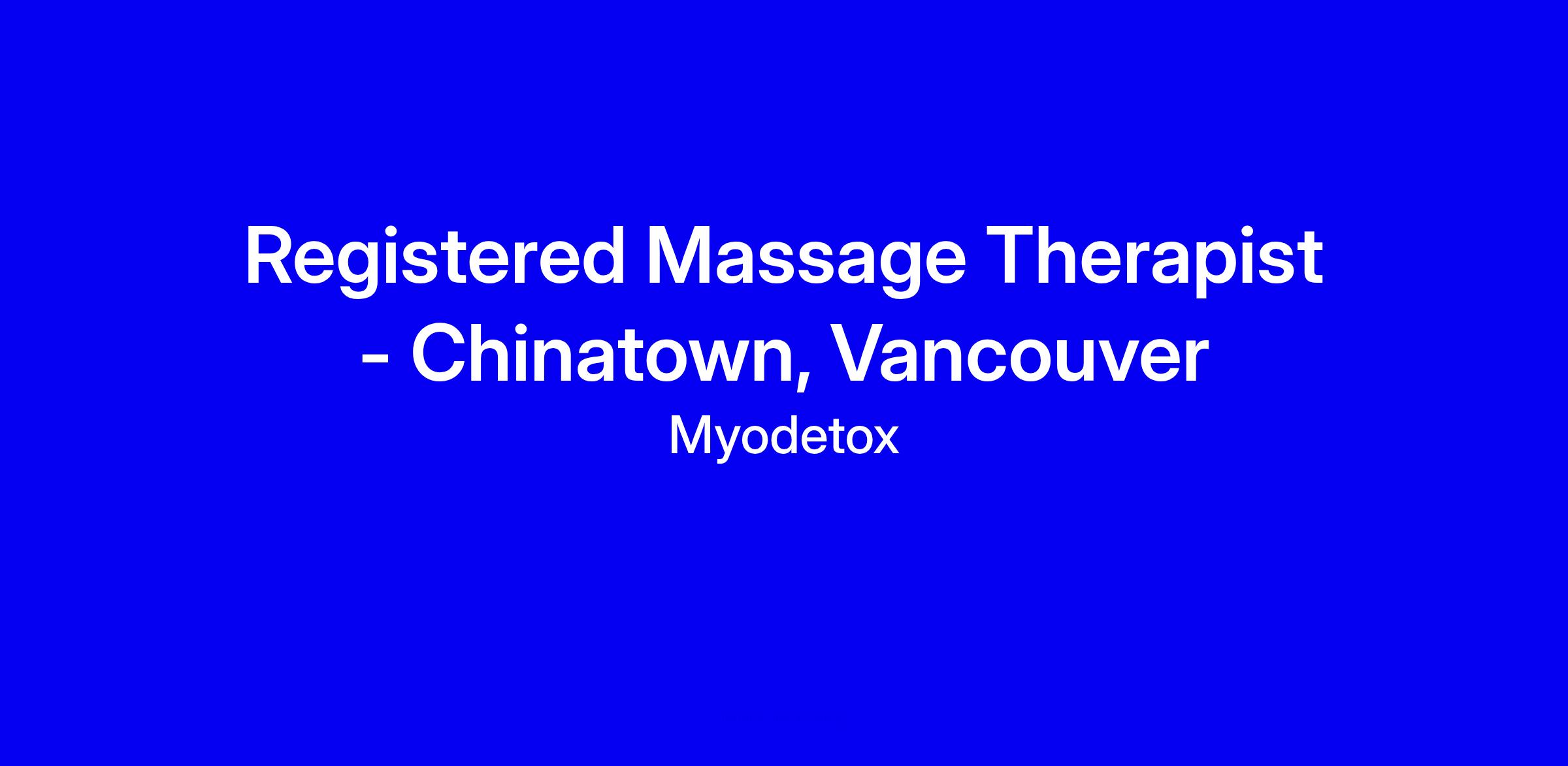 At Myo, our mission is to raise body IQ globally. We aim to empower clients with the tools they need to move better, feel better, and do what they love—longer. We envision a world where everyone feels empowered to care for their bodies with clarity and confidence. Who We AreMyo is modern physical therapy to futureproof your body. Through 1:1 expert care, our team of physiotherapists, chiropractors, and massage therapists use full-body awareness and proactive insights to intercept injury, reduce pain, and improve your every day.With 20 locations (and counting!) across Canada and the U.S., including our clinics in Vancouver (Main, Oak, North Shore, Chinatown, Fraser, Kitsilano, Park Royal and Richmond), Myo is leading the movement-health conversation and inspiring the world to make proactive care a part of everyday life. Why Chinatown, Vancouver?Our Chinatown clinic offers an exciting opportunity for a Registered Massage Therapist to join our team. Located in one of the city’s most historic and vibrant neighborhoods, this clinic serves a dynamic and diverse clientele. Chinatown is renowned for its rich cultural heritage, vibrant markets, and trendy, buzzing food scene, with a unique blend of traditional and modern influences. This location provides an inspiring environment to connect with clients who value proactive care and a well-rounded approach to wellness, all while being part of a passionate and collaborative team.For more on being a RMT at Myo, see our features: - 🔗 Step Inside a Myodetox Massage Session- 🔗 Get to know our RMT, Briana