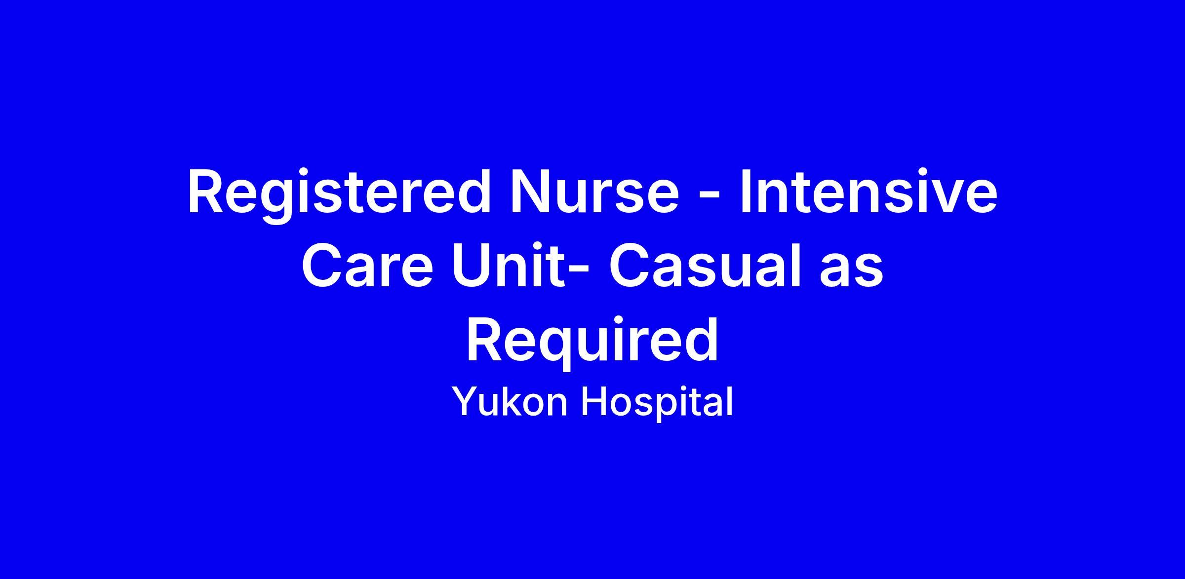Yukon Hospital is hiring a Casual as Required Registered Nurse for the Intensive Care Unit in Whitehorse at the L09 level with a competitive hourly rate. The role delivers expert nursing care within a multidisciplinary team, leads care planning, and promotes best practices. The successful candidate holds a Diploma or Baccalaureate in Nursing, is licensed or eligible with YRNA, has CPR certification, and at least one year of ICU experience or an online specialty course; ACLS and Critical Care certification are assets. Highlight leadership, teaching ability, cross cultural sensitivity, and strong communication in your application. Benefits include vacation, Yukon bonus, relocation, pension, gym and parking. Closing date March 2, 2026.