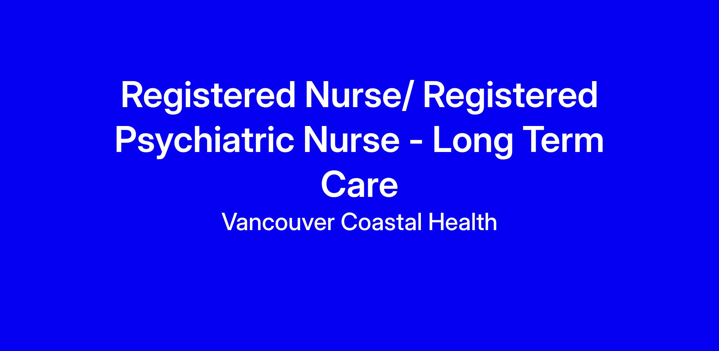 QUALIFICATIONS:Education & Experience Current practicing registration as a Registered Nurse or Registered Psychiatric Nurse with the British Columbia College of Nurses and Midwives (BCCNM). Completion of an approved gerontology course or an equivalent combination of education, training and experience.Skills & AbilitiesDemonstrated ability in nursing practice related to residents who may have chronic diseases.Demonstrated knowledge of pathophysiology of common medical conditions, aging changes, polypharmacy, treatment protocols, and nursing interventions related to common diagnoses and specific care situations related to care of adults living in Long Term Care (e.g. Stroke, Chest pain, Pneumonia; Pain management; Wound Care; Delirium; Dementia; Depression; other mental health conditions; Frail elderly residents with physical and/or cognitive impairments including Acquired Brain Injuries; Chronic illnesses such as COPD and CHF, Diabetes).Demonstrated ability to provide nursing assessments & interventions related to common diagnoses and specific care situations relevant to residents (e.g. Respiratory symptoms such as Shortness of Breath; Pressure Ulcer (Braden Scale); Delirium (PRISME/CAMI); Dementia, (PIECES framework); Behavioral and Psychological Symptoms of Dementia (BPSD), GPA - Gentle Persuasion Approach; Dysphagia; Falls; Incontinence).Demonstrated ability in recognizing physical adaptations required to accommodate the frail elderly and/or physically impaired resident population.Demonstrated ability in End of Life care approaches, Embedding Palliative Approach in Care (EPAC) in long term care and systems of family dynamics and end-of-life issues. Proactively leads family/resident/Most Responsible Clinician discussions on goals of care and documents reflections of Medical Orders for Scope of Treatment. Demonstrated ability in Chronic Disease Management by being able to anticipate and respond to potential complications and care issues relevant to the designated resident group.Demonstrated ability in correct usage of equipment such as lifts, oxygen, suction machines, pumps, and other related equipment. Demonstrated ability in developing care plans and able to implement care in relation to resident and family priorities, including counselling and teaching residents and families based on their priorities. Demonstrated skill in the assessment and management of residents with acute/chronic pain management including residents with Cognitive impairment. Demonstrated skill in safe care & management of residents with Oxygen Therapy; VAC Dressing; Wound Care, Catheters, Ostomy Care, Tracheostomy Care, Ventilator Management, and other treatments. Demonstrated skill in performing RN autonomous scope of practice and standards of care relevant to designated patient/client population including IV, infection control, isolation protocols, outbreak protocols, Nicotine Replacement Therapy, acute event orders, etc.The hours of work including days off and work area may be subject to change consistent with operational requirements and the provision of the Collective Agreement and applicable statutes.