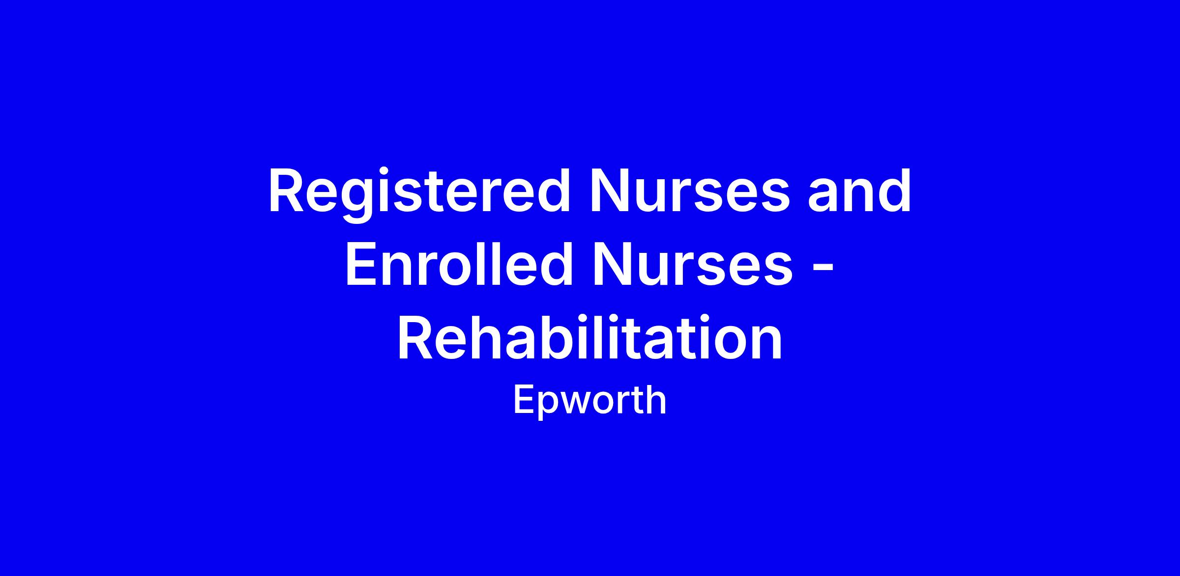 Epworth Rehabilitation is seeking registered and enrolled nurses with acute or rehabilitation experience to join Epworth on a fixed-term contract until 20/12/2026.