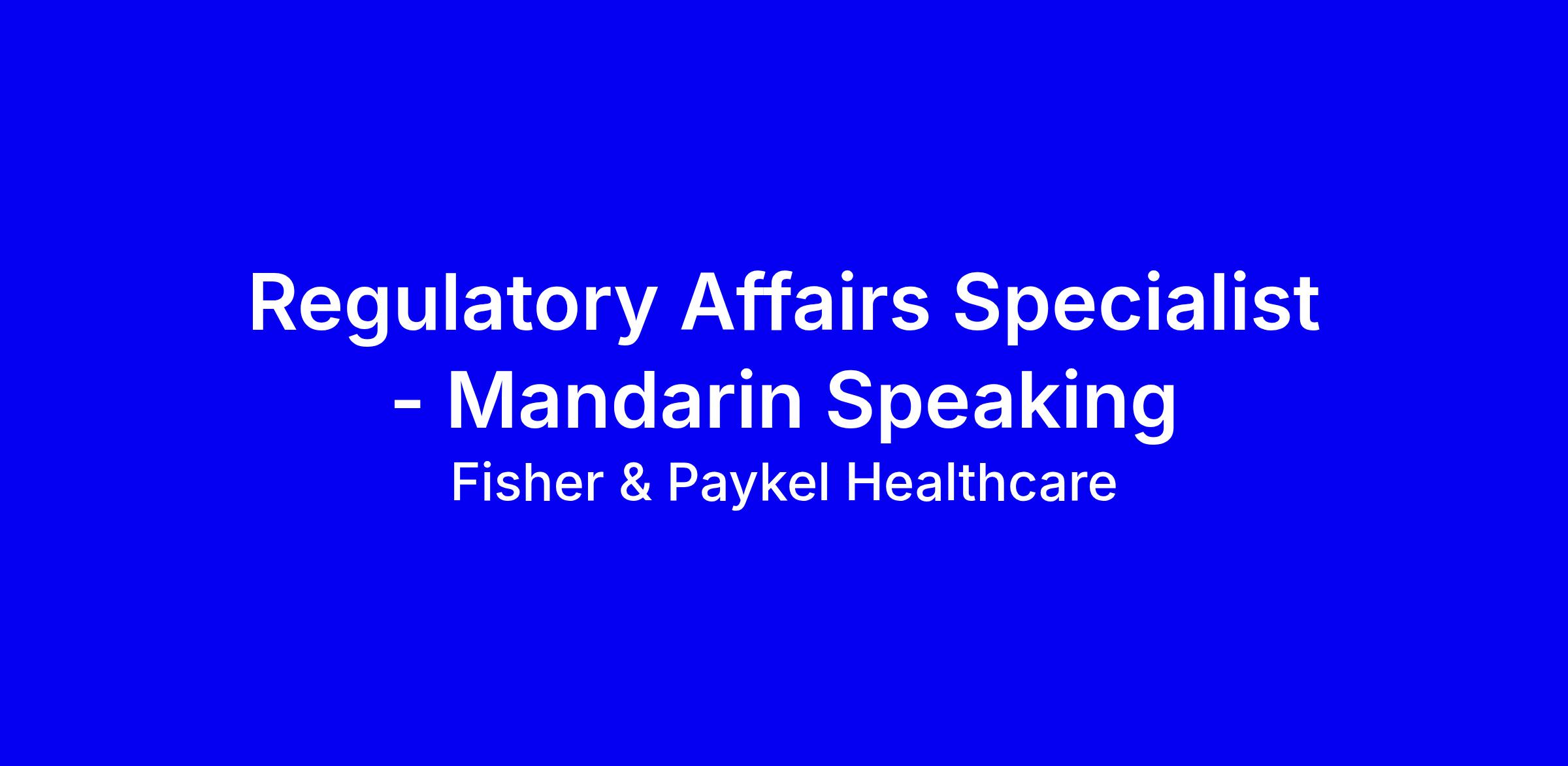 Fisher & Paykel Healthcare is hiring a Mandarin-speaking Regulatory Affairs Specialist for a full-time onsite role in Auckland, supporting China, Taiwan, Hong Kong and Macau. You will track evolving regulations, collaborate with Design, Quality and Marketing to shape market access strategies, manage regulator relationships, deliver submissions, and drive improvements to regulatory processes. The ideal candidate has a tertiary qualification in Law, BioScience, Engineering or Science, 2+ years of project management in a regulated industry, and is fluent in English and Mandarin with strong technical writing to prepare dossiers. To apply, tailor your CV to regulatory successes, highlight dossier work and collaborative delivery, and show a proactive mindset. Apply before 02/03/2026, Requisition 6175.