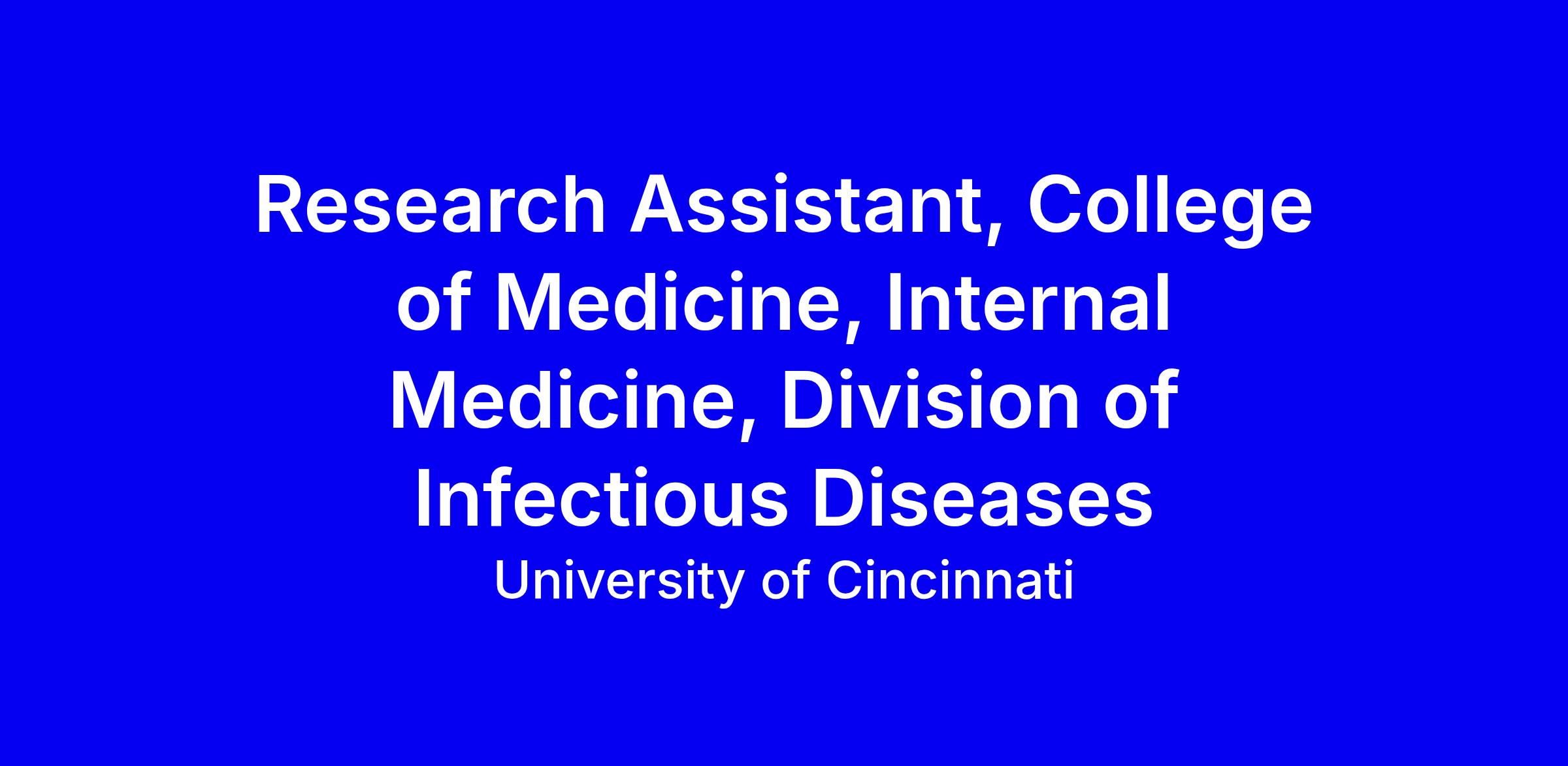 University of Cincinnati seeks a full-time Research Assistant in the College of Medicine, Internal Medicine, Division of Infectious Diseases to support Dr. Miller-Handley’s lab. The role involves performing and recording experiments, troubleshooting, maintaining detailed records, coordinating daily lab work, training junior staff, presenting data in meetings, and ensuring safety and organization of supplies. A Bachelor’s degree is required, with four years of related experience or training substituting. Strong organization, data management, teamwork, and the ability to follow protocols are essential. UC internal candidates must apply via SuccessFactors; submit a complete profile, tailor your resume to lab skills, and highlight collaboration. Check UC benefits and E-Verify.