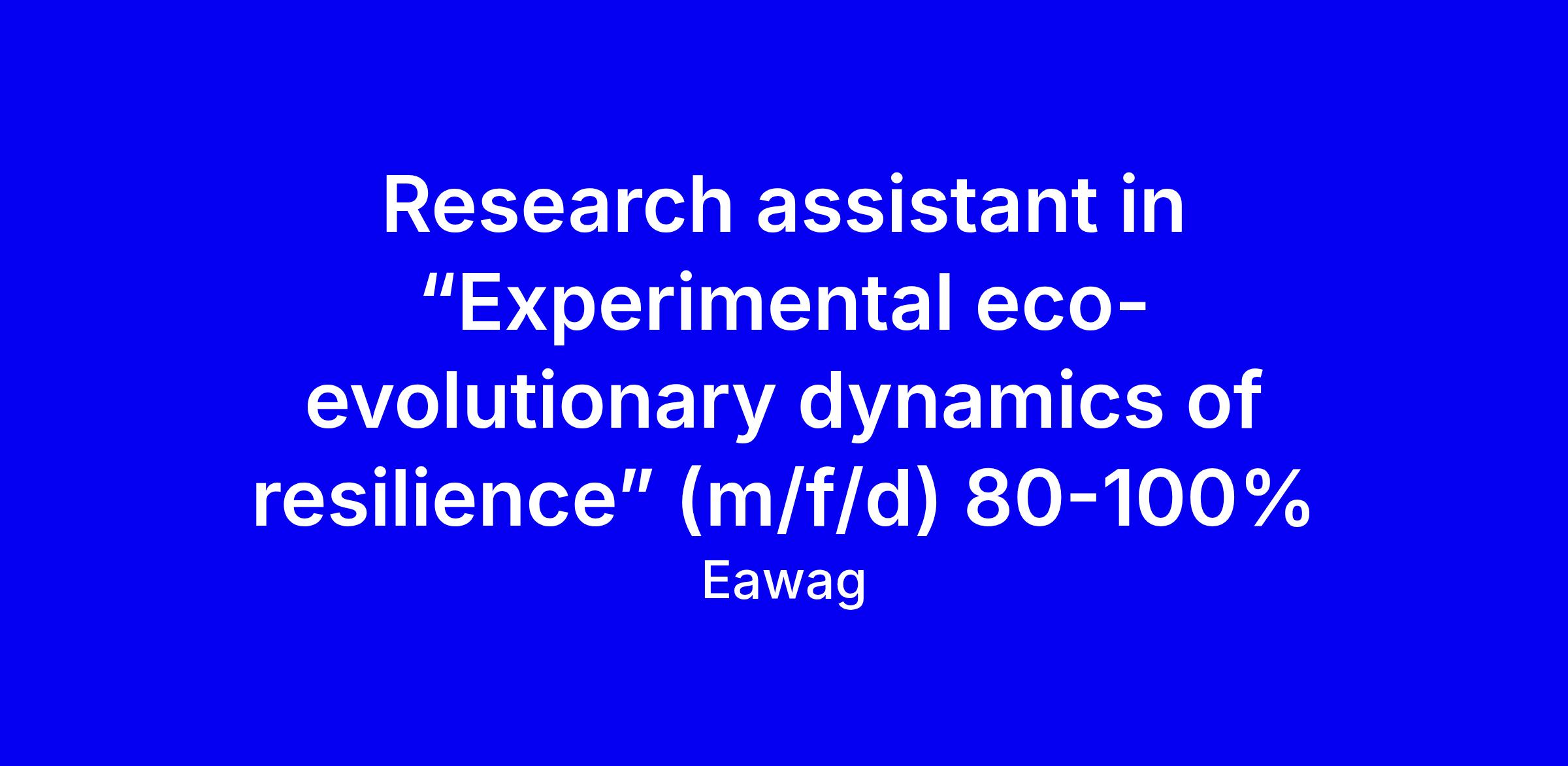 Eawag seeks a motivated research assistant to join the experimental eco-evolutionary dynamics of resilience project led by Dr. Chaparro, based at Kastanienbaum. The role supports an experimental evolution study using plankton to probe how life-history plasticity and evolution shape demographic and community resilience under stress, with a two-year funded post starting in Q2 2026. Ideal candidates hold a Bachelor or Master in evolutionary biology or ecology, have hands-on lab and field experience with plankton, and strong data analysis skills. To apply, prepare a single pdf including a cover letter, CV, diplomas, and three references; deadline 10 March 2026; contact [email protected] for details. We value flexible work and a supportive, international environment.
