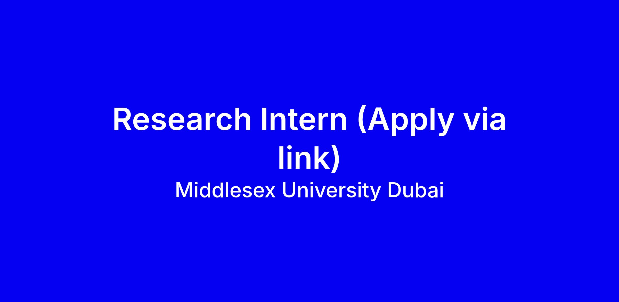 Middlesex University Dubai invites applications for a Research Intern on site in Dubai. Important note: only applicants who apply via the provided Jotform link will be considered; the Apply Now button will not be reviewed. To strengthen your candidacy, submit a polished resume and a brief statement within the form that ties your coursework and any prior research experience to the university’s research interests, showing relevant skills such as literature review, data analysis, programming, or lab work. Ensure you complete every field, attach required documents if asked, and verify your work eligibility in the UAE. Submit promptly and monitor for any confirmation or follow up from the recruitment team.