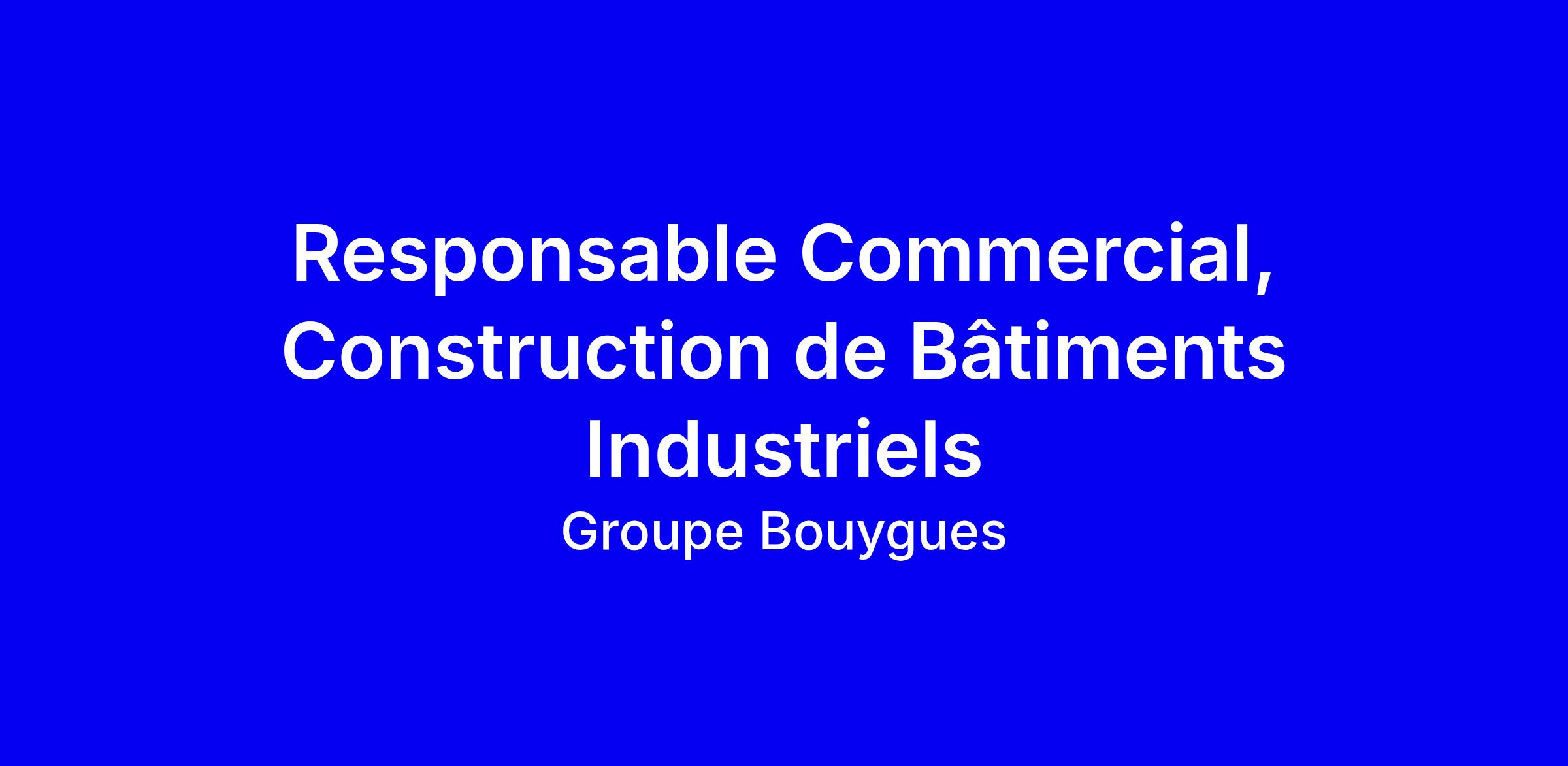 Poste de Responsable Commercial, Construction de Bâtiments Industriels chez Bouygues Bâtiment Industrie Île-de-France, CDI basé à Tremblay-en-France. Le rôle implique la gestion de la relation client, la préparation et la négociation des offres, et la coordination avec les équipes techniques pour livrer des projets industriels tout en soutenant l’industrialisation et la décarbonation des territoires. Exigeant minimum 5 ans d’expérience en commerce ou conception/réalisation de bâtiments industriels, vous devrez comprendre les besoins clients, suivre les appels d’offres et développer de nouveaux marchés, notamment dans la défense et les mobilités douces. Pour postuler, adaptez CV et lettre en mettant en avant vos réussites en négociation et conduite de projets, et montrez votre adhérence aux valeurs Bouygues en matière de sécurité et d’éthique.