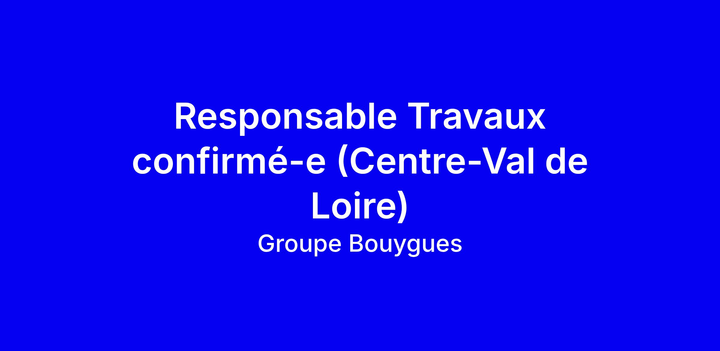 Chez Bouygues Bâtiment Centre Sud-Ouest, filiale du Groupe Bouygues Construction, nous sommes plus de 600 collaborateurs tous animés par une même ambition : bâtir pour la vie. Implantés dans quatre régions, Centre-Val de Loire, Nouvelle-Aquitaine, Occitanie et en Outre-Mer, nous améliorons le quotidien de millions de personnes en construisant ou en réhabilitant des bâtiments qui servent la vie et répondent à tous les besoins : habiter, éduquer, soigner, apprendre, travailler, se divertir. Dans le cadre de notre fort développement en Centre-Val de Loire et Poitou, nous recherchons notre futur(e) Responsable Travaux confirmé(e) pour prendre la responsabilité d'une ou plusieurs opérations de construction neuve ou de réhabilitation (entre 8 et 15M€). Selon le profil et la localisation géographique, les projets pourront varier : logements, bureaux, ouvrages fonctionnels, industriel. Sous la responsabilité du Directeur Travaux de la région Centre-Val de Loire, vôtre rôle sera de superviser le déroulement d'un ou plusieurs chantiers dont vous aurez la responsabilité (coordonner la gestion et le suivi des travaux de vos/votre chantier(s)).Vos principales missions seront les suivantes : Appréhender et superviser les travaux à réaliser Superviser et effectuer les consultations des sous-traitants en collaboration avec notre service achats, montage et suivi des budgets en fourniture et poseVérifier la bonne organisation et coordination au quotidien des sous-traitants et fournisseursManager le / les collaborateurs sous votre responsabilitéVous êtes le garant de la qualité des travaux et du respect des délais sur les lots qui vous incombent.Reconnu(e) pour la qualité de vos relations humaines et votre engagement, vous faites de la sécurité une priorité de votre action ! Issu-e d’une formation supérieure, de Bac +3 à +5, vous disposez d'une dizaine d'années d'expérience en conduite de travaux en entreprise générale. Une première expérience en management direct serait un plus.Vous êtes la bonne personne :Parce que vous appréciez prendre en charge des projets d’envergure et techniques,Parce que vous êtes curieux(se), rigoureux(se), et avez le souci du détail,Parce que tout comme nous, vous êtes orienté(e) client/projet/équipe et résultat,Parce que vous êtes reconnu(e) pour vos qualités humaines,Parce que pour vous pilotage rime avec anticipation,Parce que la vie de chantier est votre moteur au quotidien, et que vous recherchez l'adrénaline du terrain. Si vous vous reconnaissez dans le profil recherché, n’hésitez plus et postulez !