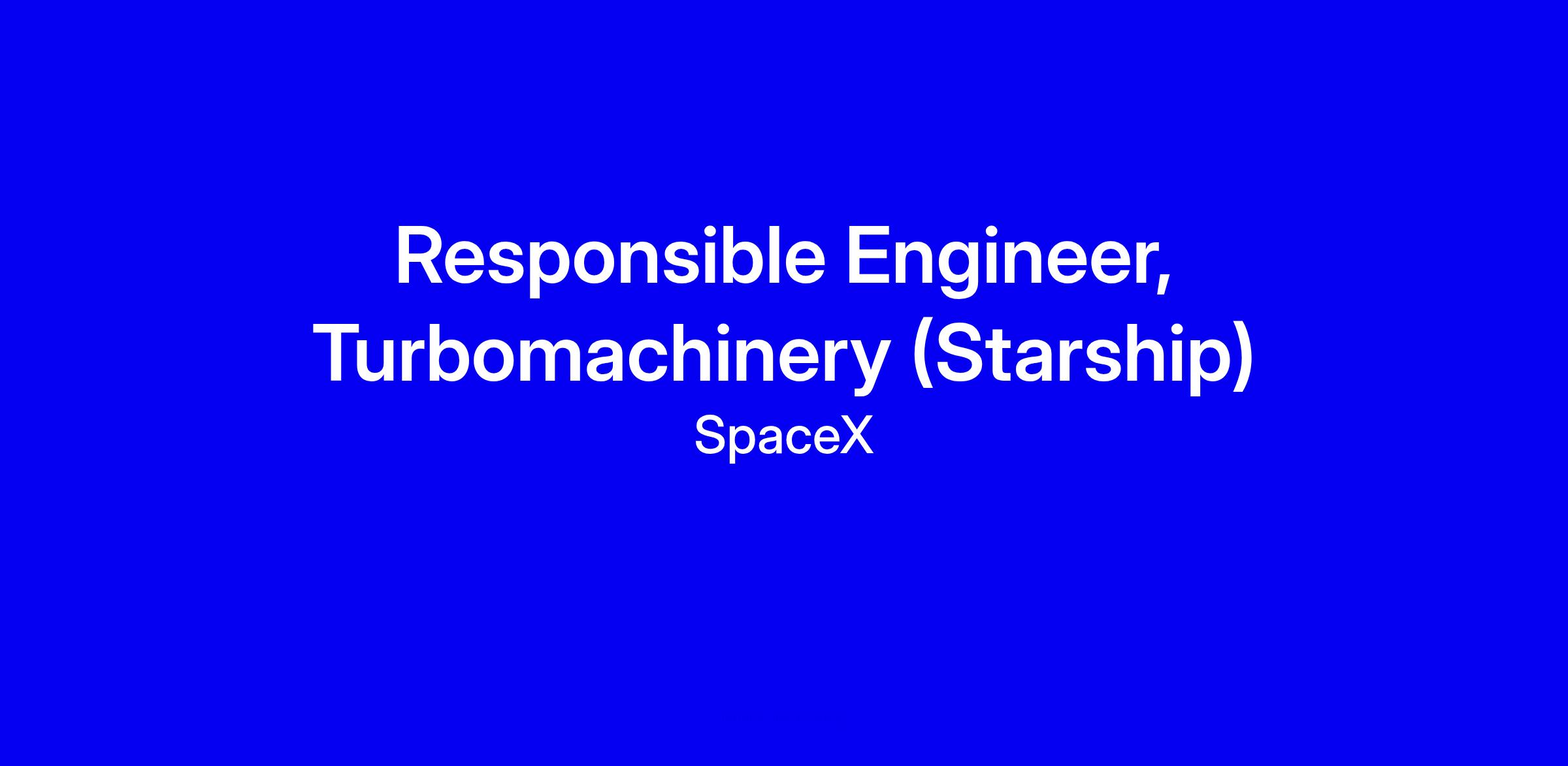 RESPONSIBLE ENGINEER, TURBOMACHINERY (STARSHIP)