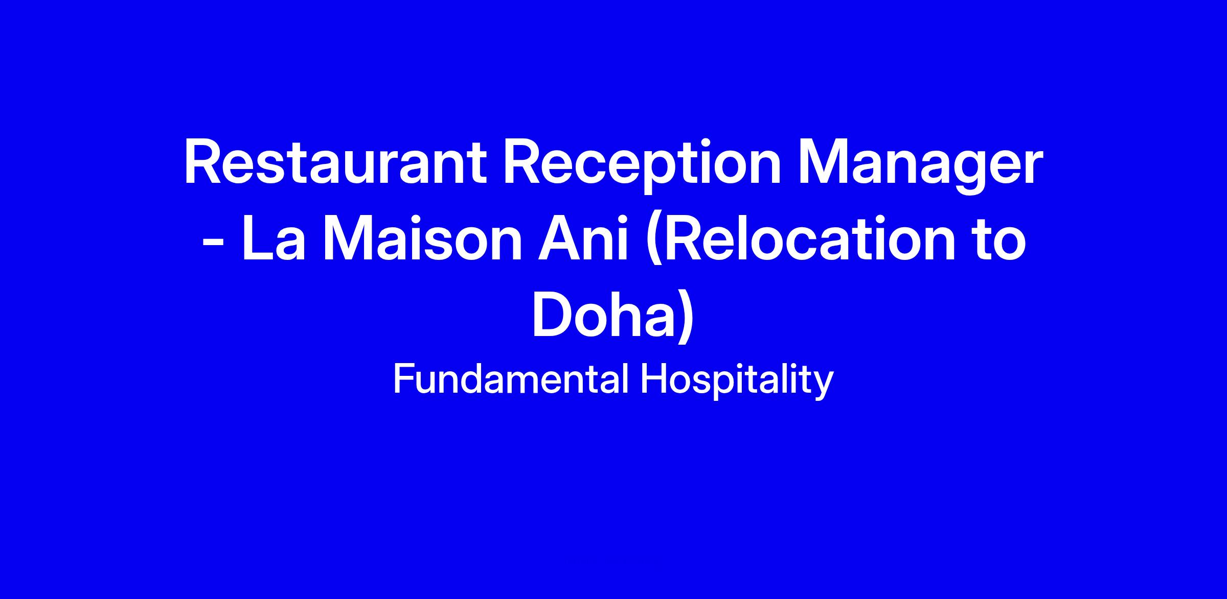 Fundamental Hospitality is looking to hire an experienced Reception & Reservation Manager to join our pre-opening team for La Maison Ani in Doha.