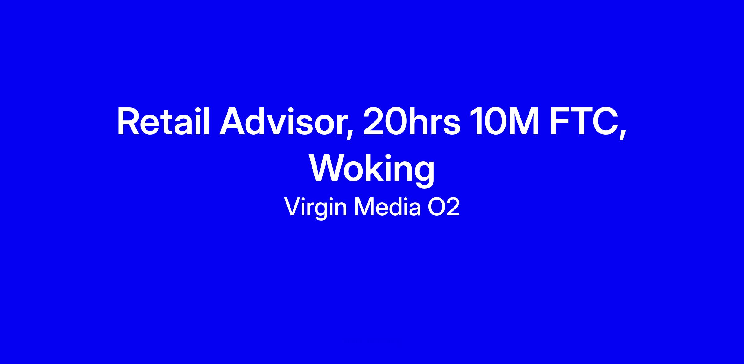 Virgin Media O2 is hiring a part-time Retail Advisor in Woking for a fixed-term contract (20 hours per week). You’ll greet customers, build rapport, tailor tech and service solutions, keeping the store welcoming. Must-haves: confident communication, resilience, flexibility, plus a genuine interest in technology and a readiness to learn in a fast paced retail setting. Prior retail experience helps but isn’t essential. You’ll get a four-day induction (30 hours) and ongoing training, a starting rate of £12.40 per hour with potential extra via accreditation, plus strong benefits. After applying expect an online assessment and a recruiter call; tailor examples to customer outcomes and teamwork and show you can adapt to shifts and fixed-term tenure.
