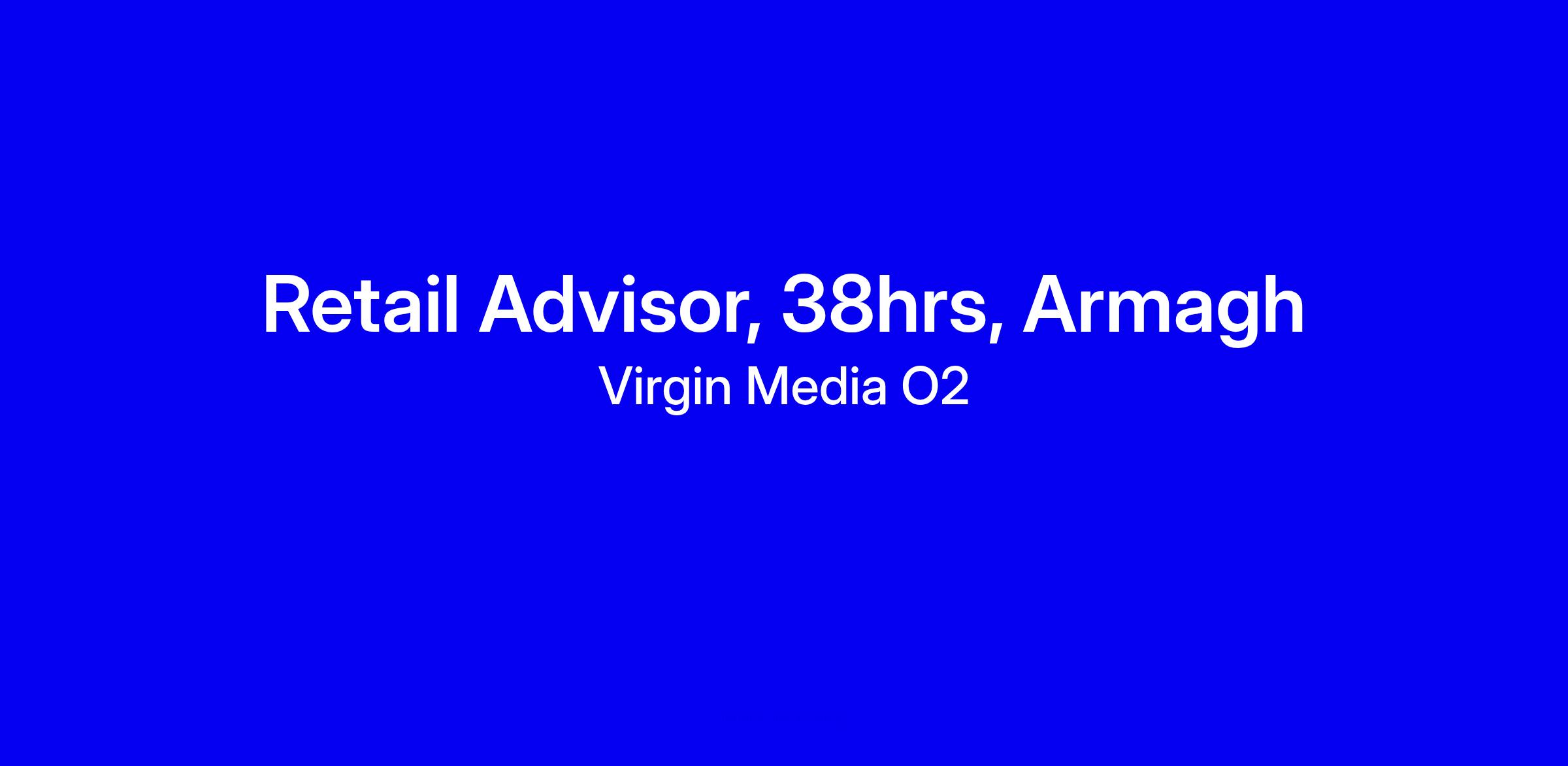 Virgin Media O2 is hiring a Retail Advisor in Armagh for a full-time on-site role (38 hours) to deliver exceptional service, help customers discover the right products, build rapport, and meet store and performance targets while keeping the space welcoming. You'll be welcomed with a supportive team and a 4-day induction (30 hours) to deep dive into the business and customers. The must-haves are confidence, strong communication, resilience and flexibility; plus a genuine interest in technology and customer service. The package includes £12.40 per hour, potential to earn via accreditation, private medical cover, generous leave and pension. After applying, expect an online assessment and a recruiter call if successful.