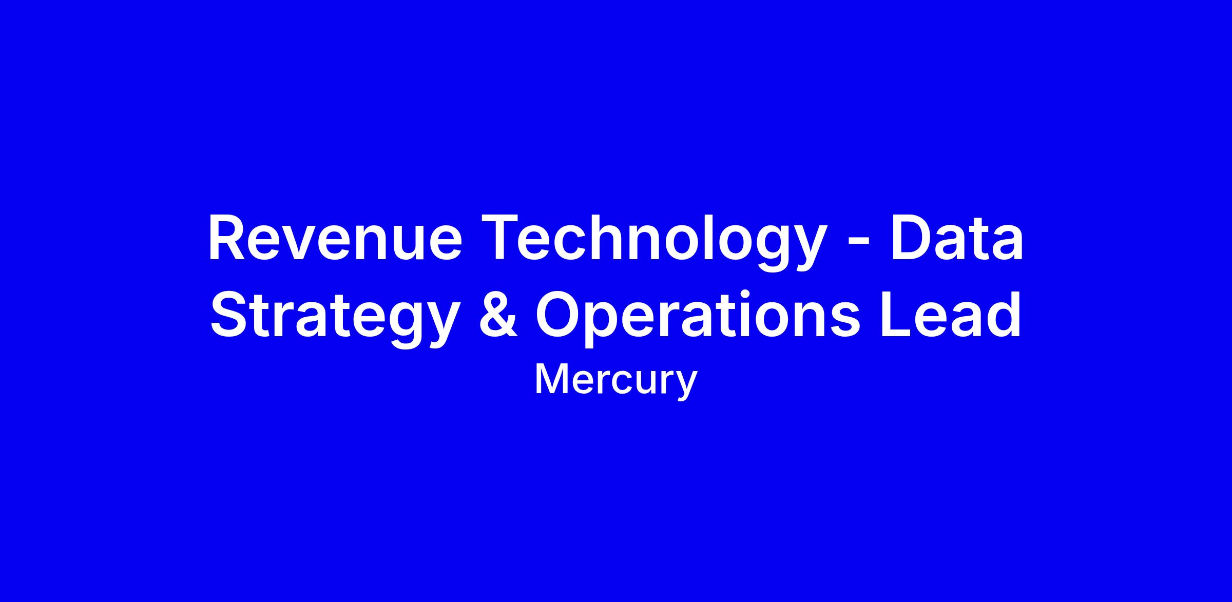 Mercury is hiring a Revenue Technology Data Strategy & Operations Lead to own the data foundations powering revenue execution, reporting to the Head of Platforms & Infrastructure and partnering with Data Engineering, Data Science, Solution Architecture, and Platform Engineering. You’ll ensure Salesforce and GTM data are reliable, define core data models and contracts, uphold quality standards, monitor pipelines, and reduce manual work while supporting forecasting and lifecycle tracking. Requires 7+ years in data engineering or data systems in SaaS, expert SQL and data modeling, hands-on with Snowflake BigQuery Redshift, ETL/ELT tools, and Salesforce data. Preferred: revenue data, governance, mentoring. Tip: tailor your resume to show end-to-end pipeline ownership and cross-team impact on revenue data integrity.
