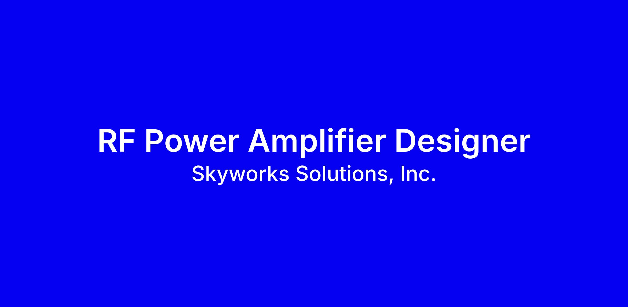 Skyworks is hiring an RF Power Amplifier Design Engineer in Andover, MA, full-time onsite, to join the Module Design Team and develop RF power amplifiers for automotive and IoT. You will work with GaAs, GaN, SOI or SiGe, conduct lab tests, guide layout, and support products from concept to production, covering IC, package, EM and thermal aspects. Requirements: BS in EE or Engineering Physics, about 8 years of experience or an advanced degree, PA IC tape-out experience, EM knowledge, and proficiency with RF design and EM tools. Tips: tailor your resume to PA projects, quantify impact, show collaboration and leadership, and be ready to discuss problem solving and data analysis.