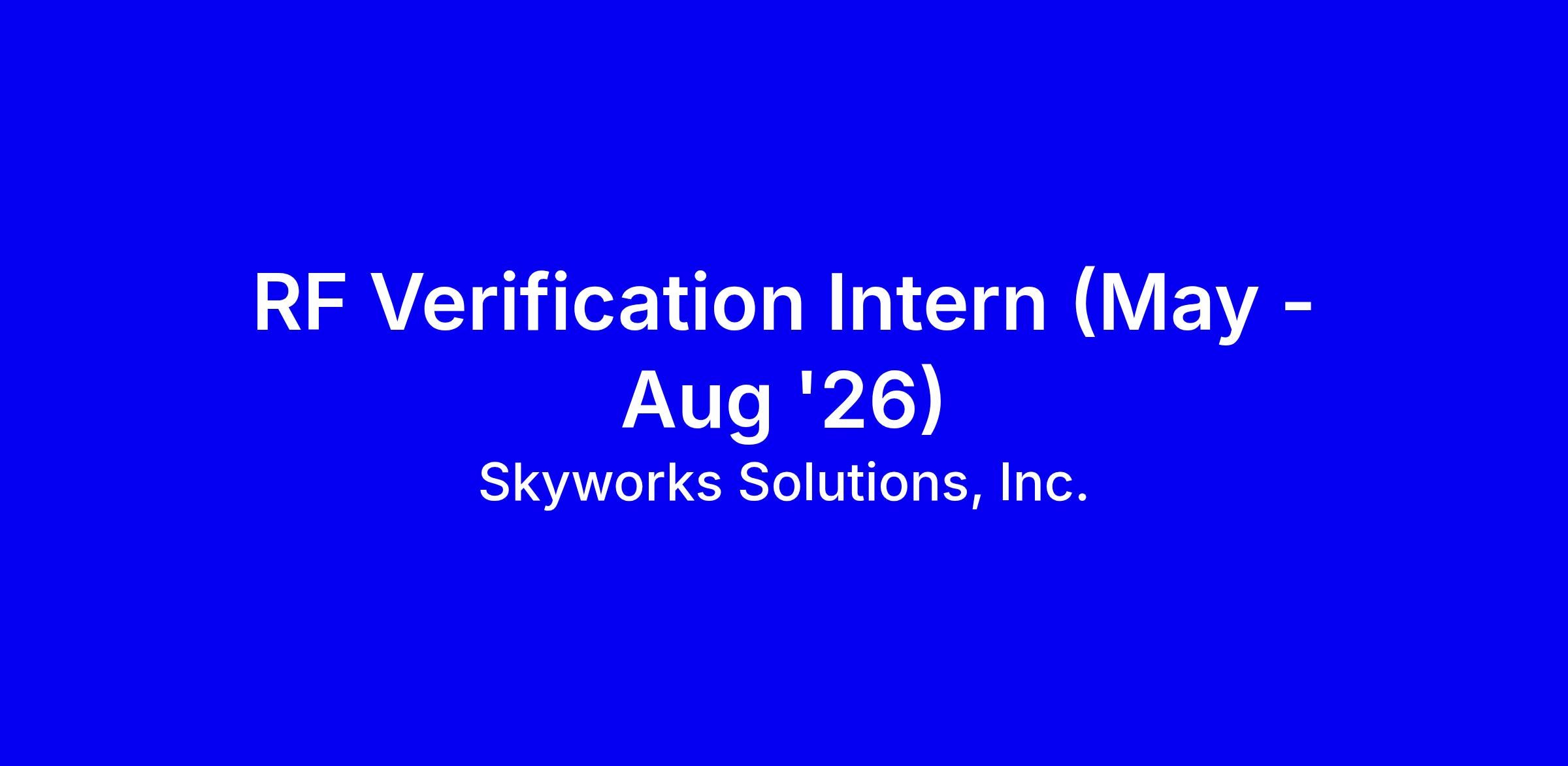 Skyworks Solutions is seeking an Electrical or Computer Science Engineering student for a May to Aug 2026 RF Verification internship in Hillsboro, OR, onsite, to support IC development through RF testing and data reporting. You will assist Design Engineers under a Senior Engineer, creating test scripts in LabVIEW and TestStand and developing test data and summary reports. Ideal candidates are sophomores or juniors (freshmen with relevant experience considered) with solid fundamentals in analog and digital electronics and proficiency in Python and LabVIEW. Desired extras include advanced LabVIEW development, NI TestStand, familiarity with spectrum and network analyzers, oscilloscopes, RF generators, and basic databases. Tips: tailor your resume to show LabVIEW and Python projects, quantify outcomes, and demonstrate collaboration and a proactive problem solving mindset.