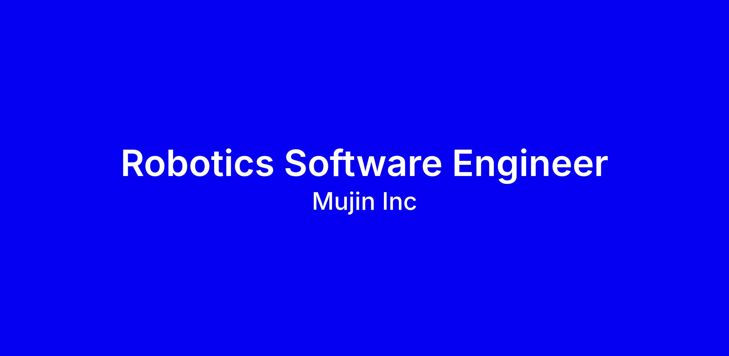 Position: Robotics Software EngineerAs Robotics System Engineer, you will be focusing on algorithmic design, development, and deployment of robotics technologies using MujinController. You will work collaboratively with a team of engineers, programmers and project managers to create and refine automated material handling systems that improve efficiency, accuracy and safety. If you are a talented and driven Robotics System Developer looking to make an impact in the robotics automation industry, we encourage you to apply.
