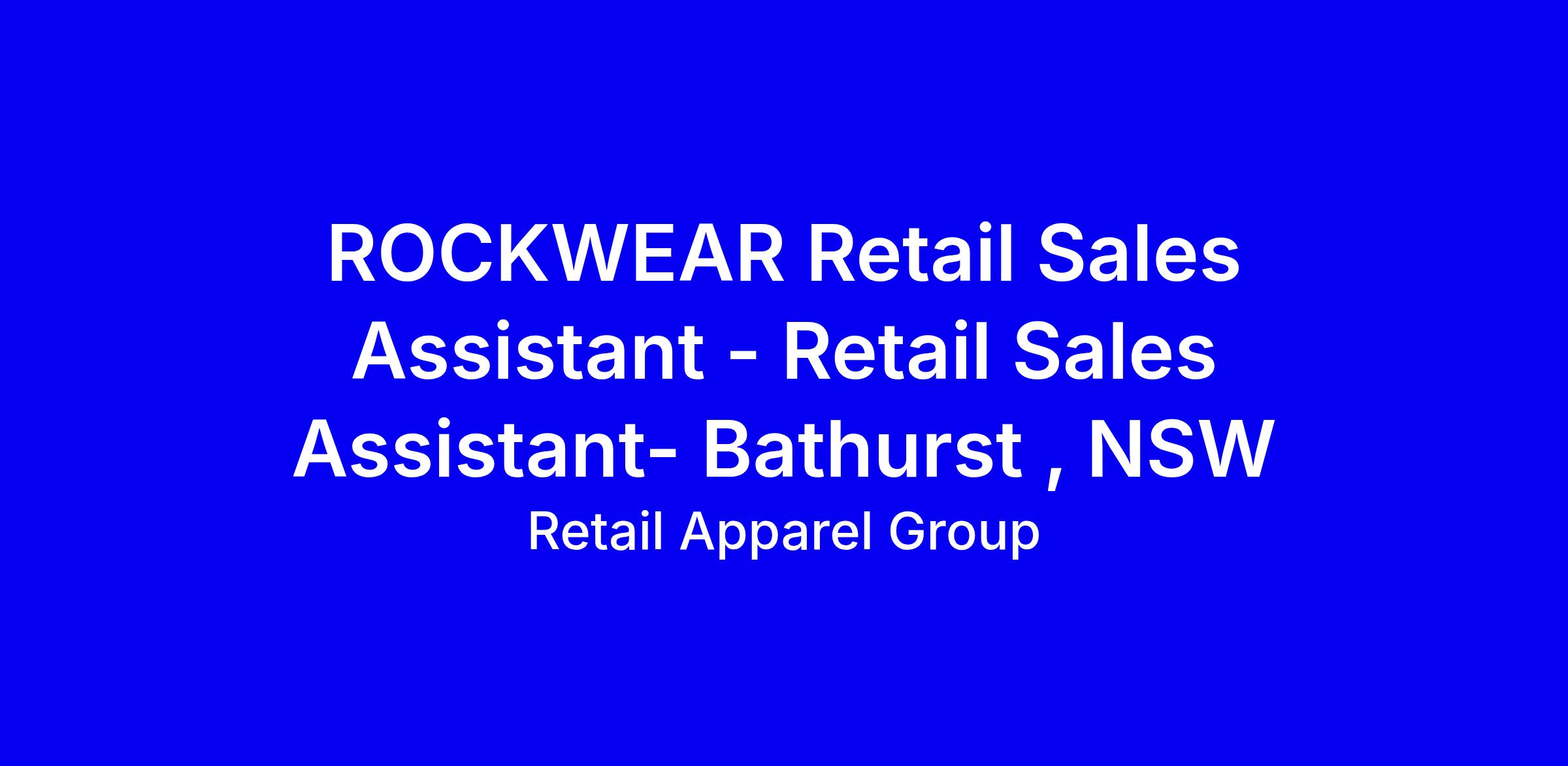 Rockwear Retail Sales Assistant role in Bathurst NSW is a full-time, on-site opportunity within the Retail Apparel Group network, offering a supportive team culture, strong training and clear paths for advancement, plus perks like 50% team discount and weekly commissions. You’ll collaborate to deliver standout customer experiences, work toward KPIs and targets, and bring energy to the shop floor while upholding brand standards. The ideal candidate loves customer service, fashion, and activewear, is eager to learn new skills, and embraces the brand’s values. To apply, tailor your resume to show sales results, demonstrate KPI experience, highlight teamwork and resilience, and align with Rockwear and RAG brands.