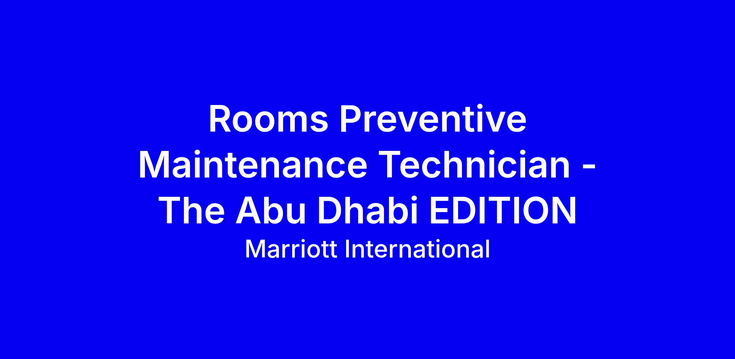 Marriott's The Abu Dhabi EDITION is seeking a Rooms Preventive Maintenance Technician to handle guest repair requests, perform preventive maintenance on kitchen and mechanical room equipment, inspect tools, operate shut-offs, and manage maintenance inventory while communicating daily activities across shifts. The role covers HVAC, electrical, plumbing, carpentry, painting, TV programming, landscaping, and basic computer scheduling. You will use Lockout/Tagout, uphold safety policies, maintain a professional appearance, safeguard assets, and deliver guest-focused service. Required: driver's license and a high school diploma or GED; preferred: some maintenance or hotel engineering experience. To apply, highlight hands-on skills, safety certifications, reliability, and strong shift communication, as well as the ability to lift 50 pounds and work at heights.