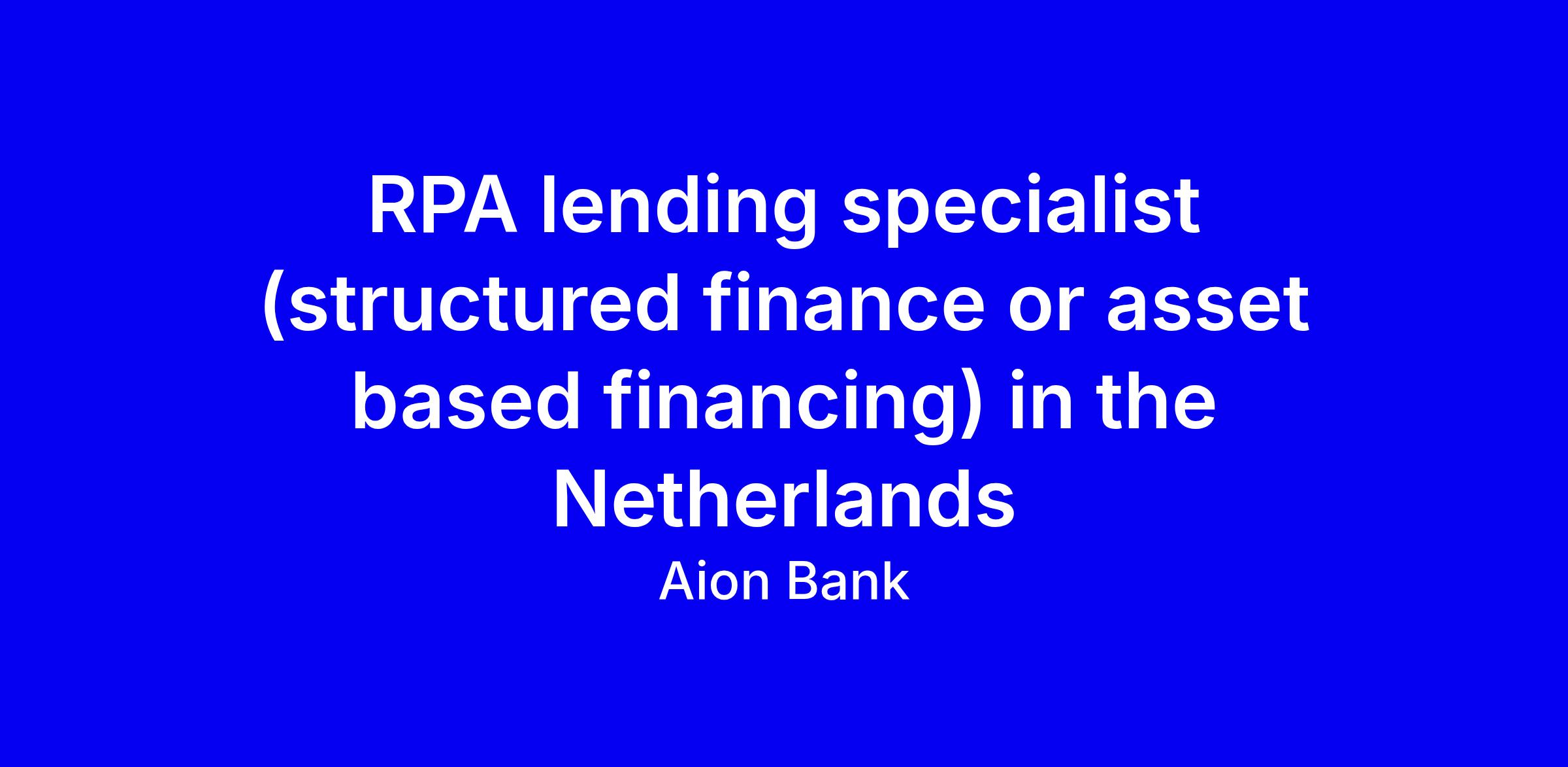 At Aion Bank, the RPA lending specialist role in the Netherlands centers on structuring and promoting innovative funding and embedded lending solutions across Europe for structured finance or asset based financing, using a broad network of investment banks, capital advisors and lenders. You will assess deal feasibility, prepare proposals with credit risk, legal and finance teams, and coordinate with C‑level, risk and compliance to move deals from submission to close while maintaining regulatory standards. Ideal candidates bring 15+ years in corporate lending with deep knowledge of structured finance, the ability to structure deals above €75M and close €5M+ transactions, and a proven European network. Tips: tailor your CV to quantify impact, emphasize cross‑functional collaboration, and apply even if you don’t meet every requirement.