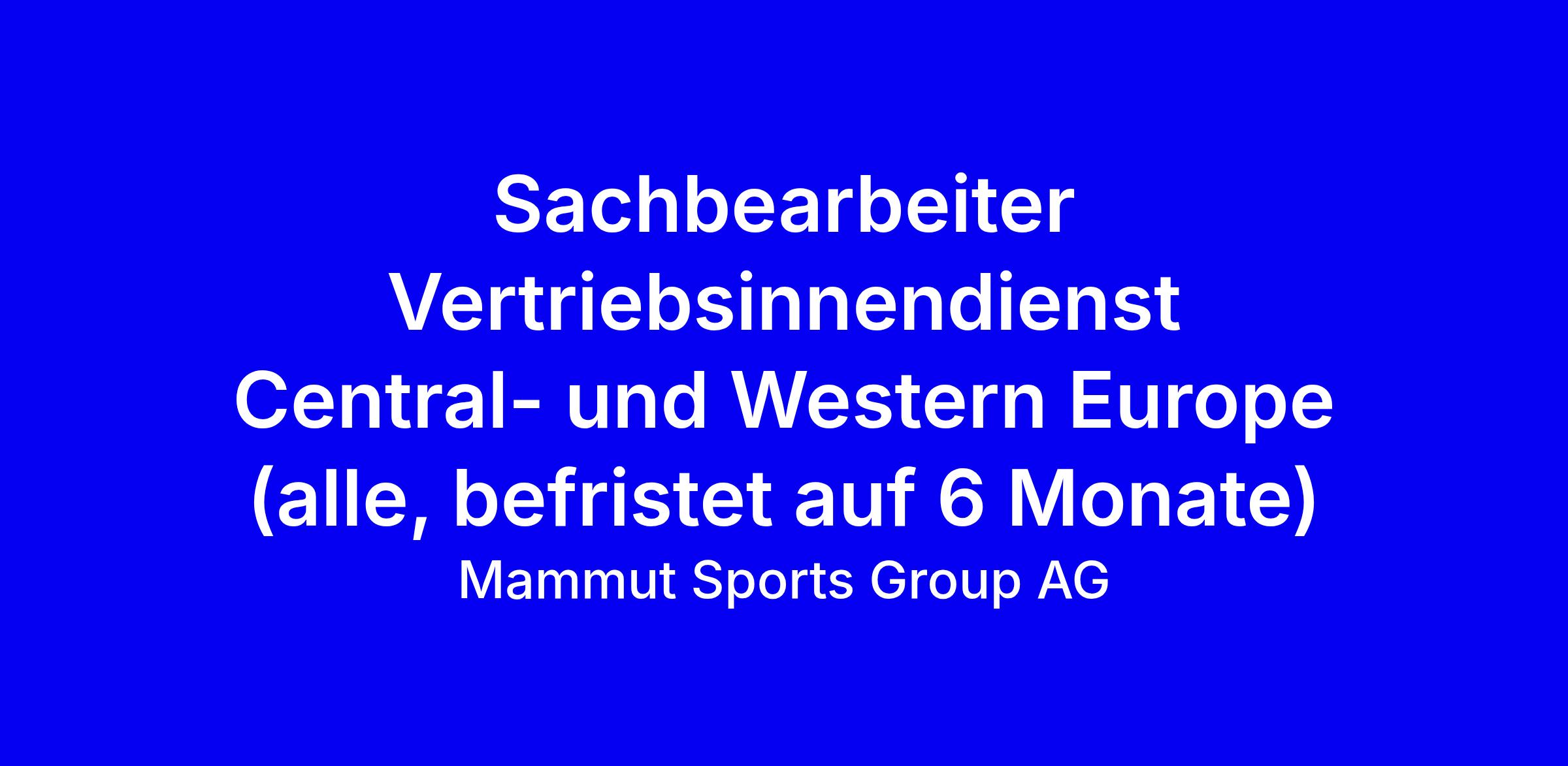 Die Mammut Sports Group sucht ab sofort einen Sachbearbeiter Vertriebsinnendienst Central- und Western Europe (alle, befristet auf 6 Monate) in Vollzeit am Standort Wolfertschwenden. Du bist Frontoffice-Ansprechpartner für den Mammut Fachhandel in der Region, betreibst Anfragen- und Auftragsbearbeitung und wirkst bei der Datenpflege im ERP-System mit, überwiegend auf Deutsch und Englisch. Voraussetzungen: abgeschlossene kaufmännische Ausbildung, sehr gute Englischkenntnisse, ERP-Erfahrung, sicherer Umgang mit MS Office (Excel). Dienstleistungsorientierung, Kommunikationsstärke, Teamfähigkeit und Identifikation mit der Outdoorbranche sind gefragt. Tipps: passe deinen Lebenslauf auf Ordermanagement- und ERP-Erfahrungen an, betone Sprachen und Kundenkommunikation, bewirb dich über den Link oder wende dich bei Fragen an Sebastian Schreiber.