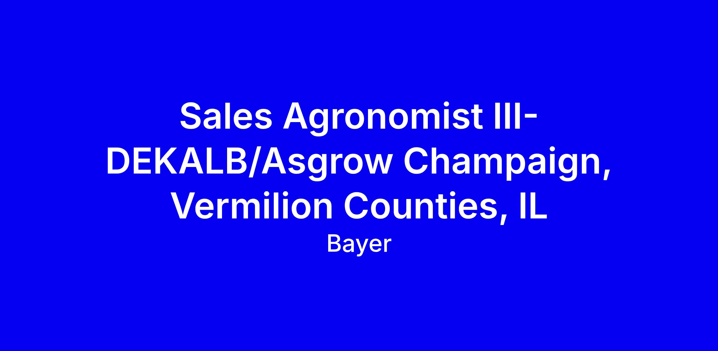 Sales Agronomist III-DEKALB/Asgrow Champaign, Vermilion Counties, IL
