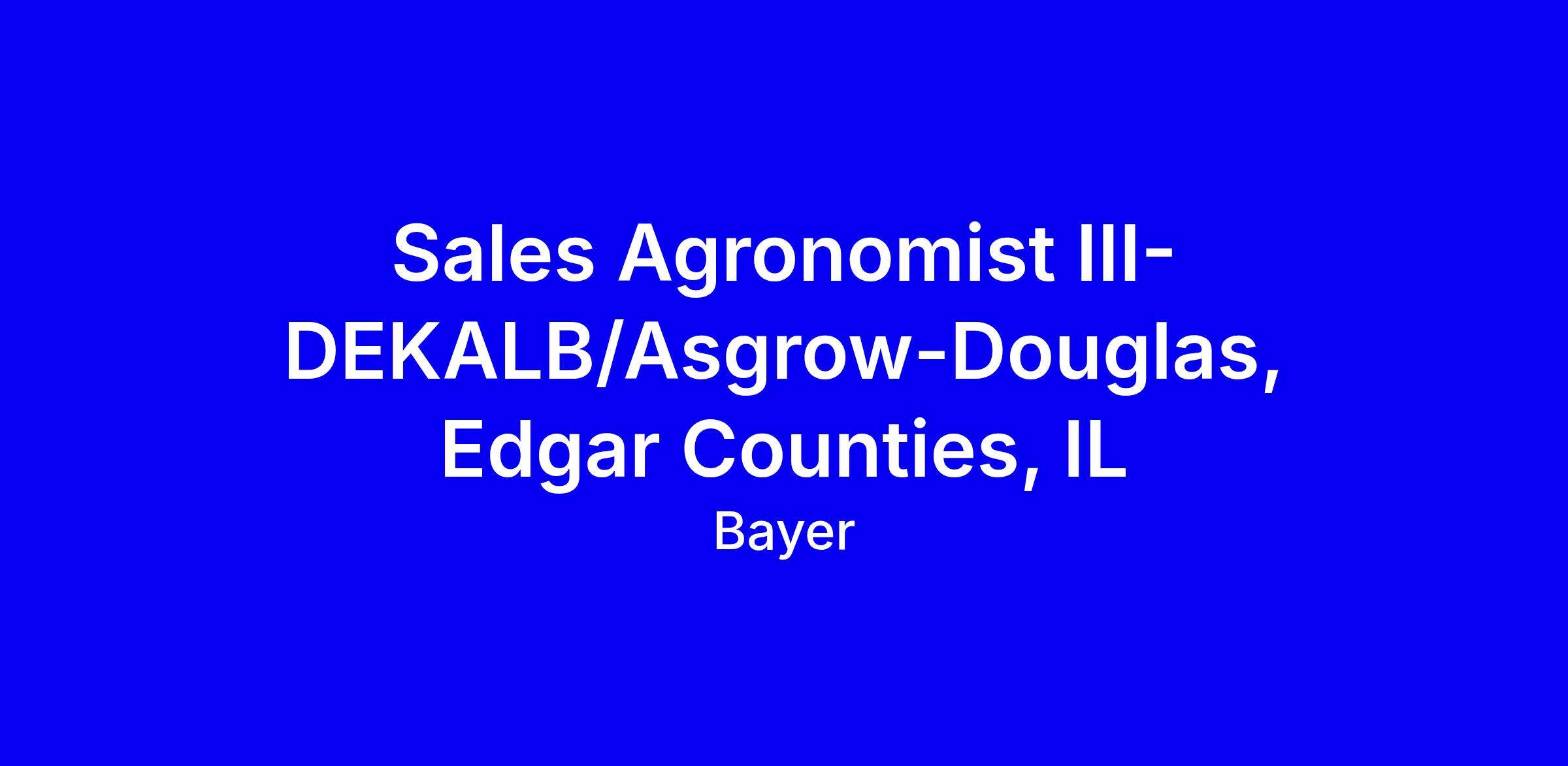 Sales Agronomist III-DEKALB/Asgrow-Douglas, Edgar Counties, IL