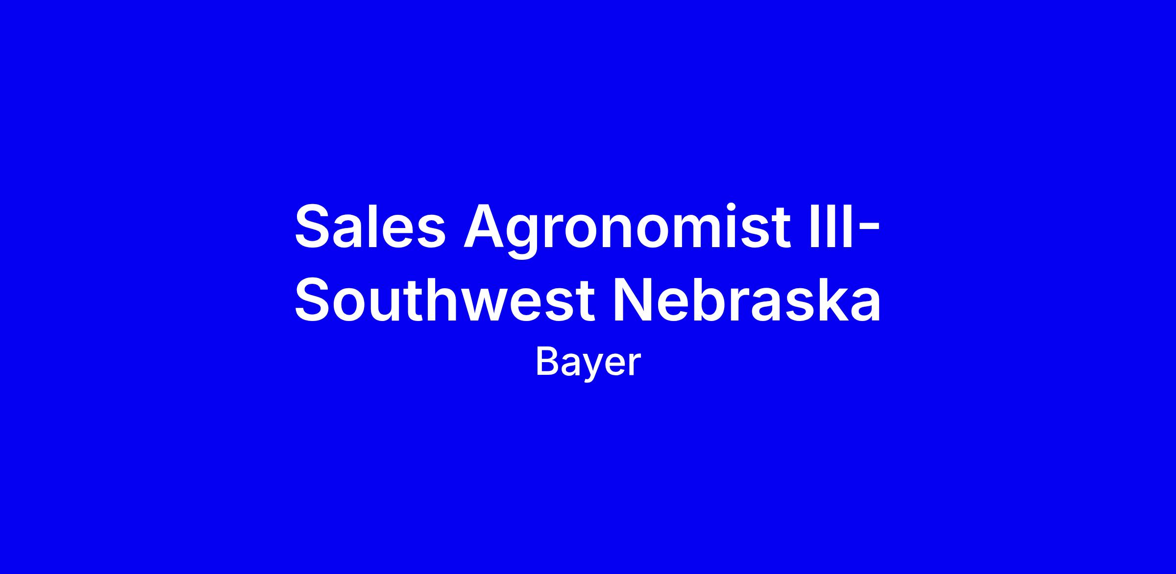 Bayer is seeking a Sales Agronomist III for Southwest Nebraska, a local expert role advising key growers on Bayer Crop Science products and agronomic strategies, driving growth by building relationships, leading grower demand plans, and conducting portfolio trials. You will develop business plans with Field Sales Reps for about 100 growers, provide whole-farm agronomic advice, lead seasonal milestones, monitor inventory and budget, and travel roughly 60 percent. Required qualifications include a Bachelor’s in agriculture or related field, 8+ years in agronomy or sales, strong communication, data driven decision making, and remote team experience. Tips: tailor your resume to highlight grower relationships, budgets, and trials; quantify results; show travel readiness; apply by Feb 6 2026; Bayer is an equal opportunity employer.