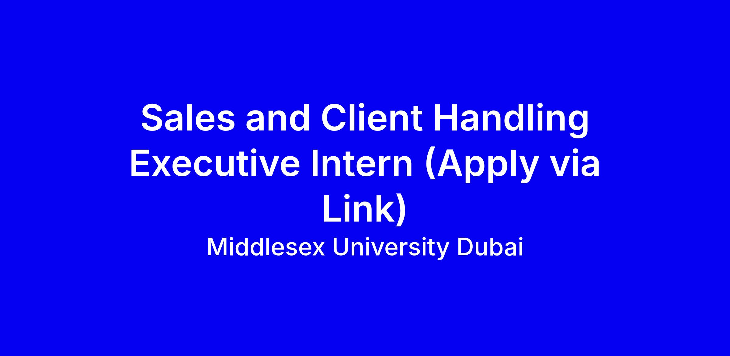 Middlesex University Dubai is offering a Sales and Client Handling Executive Intern role onsite in Dubai. The internship provides hands on experience supporting sales, handling client communications, and delivering quality service within a university setting, helping you build practical business and people skills. Important: apply only via this link https://mdx.jotform.com/260472023630850; applications submitted through the APPLY NOW button will not be considered. To maximize your chances, tailor your CV to highlight relevant sales and client interaction experience, internships or roles with direct client contact, and specific examples of effective communication. Include a brief note about your motivation, availability, and why this internship matters to you in the form.