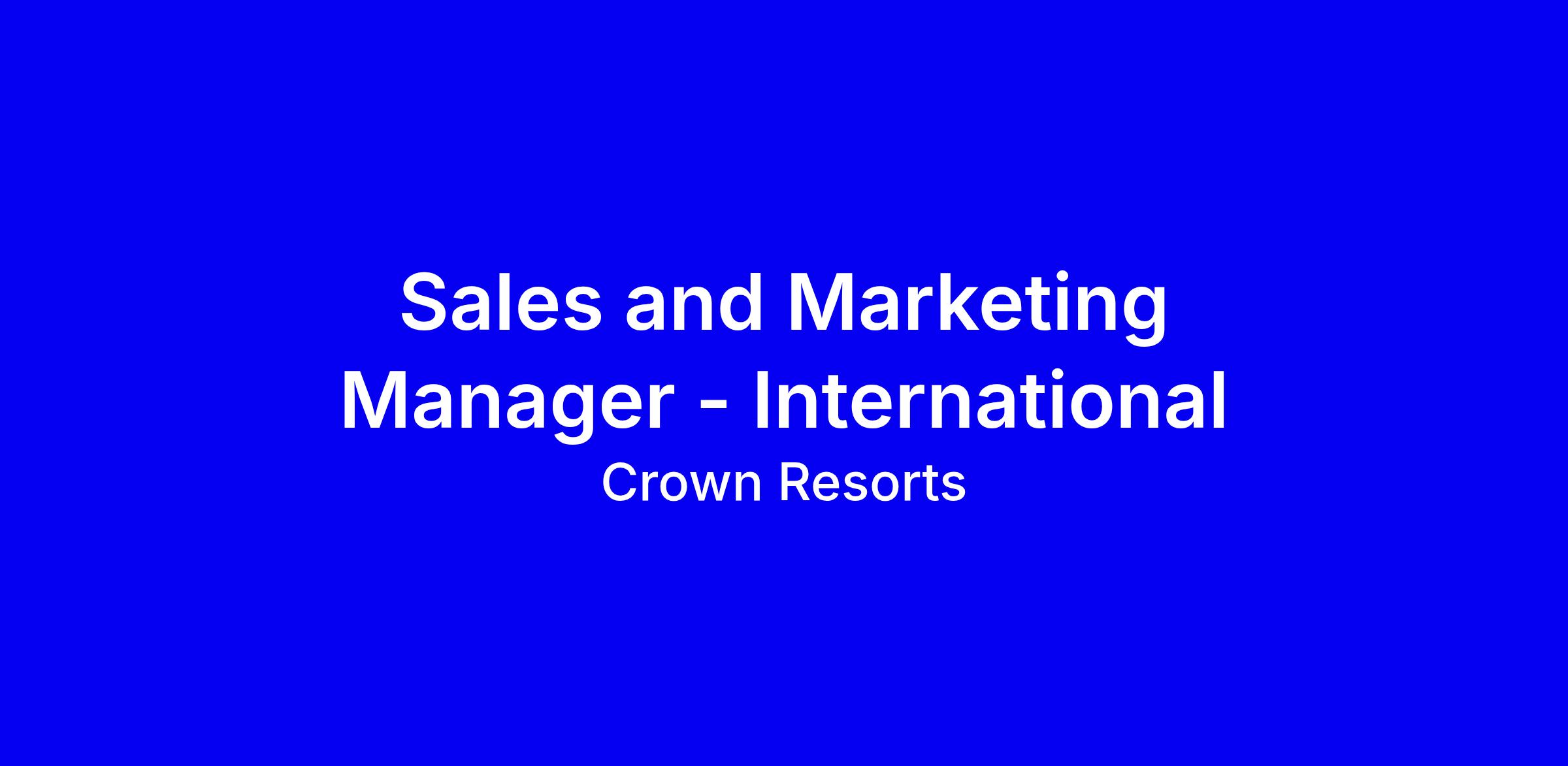 We have an opportunity for Sales and Marketing Manager - International to join our gaming marketing team. The role is responsible for establishing and promoting Crown’s gaming offering across international player markets. You will drive revenue growth by developing and executing targeted marketing strategies, fostering player engagement, and building long-term loyalty through in-market activation.