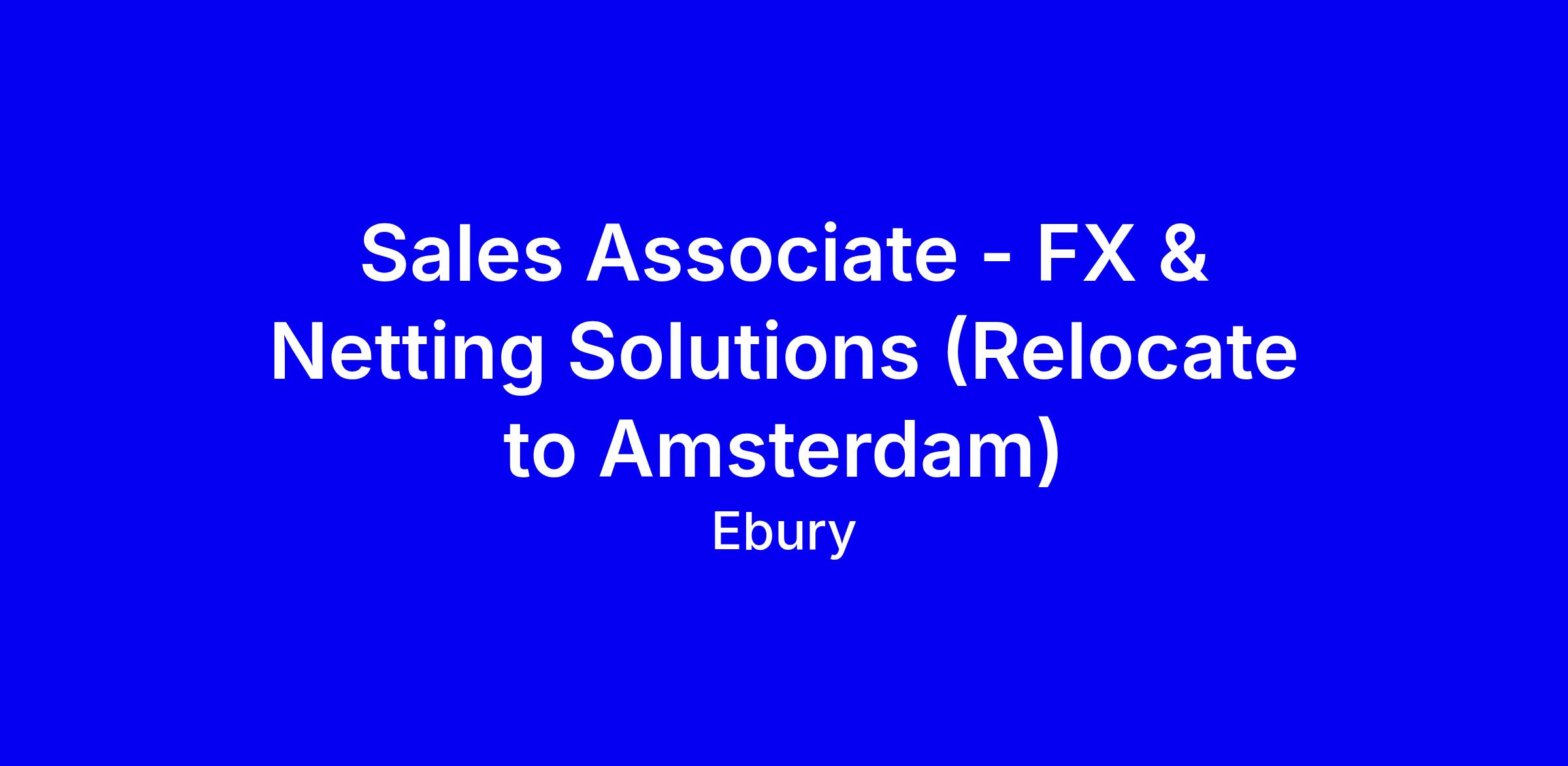 Ebury is looking for an FX Sales Associate for FX and Netting Solutions, German speakers, based in Amsterdam with relocation from Düsseldorf. You’ll drive new business in an international market, focusing on USD sell and the value of netting services for sectors like trade, commodities, offshore, food, dairy and shipping. You will own the full sales cycle from prospecting to closing, maintain a robust CRM driven pipeline, and collaborate with trading, operations and marketing to ensure smooth onboarding. The role offers exceptional on target earnings potential, a transparent commission scheme, and strong opportunities for training and career progression. Tips for applications: tailor your CV with quantified wins, highlight FX and netting expertise, CRM experience, and multilingual ability, and submit in English via the careers site.