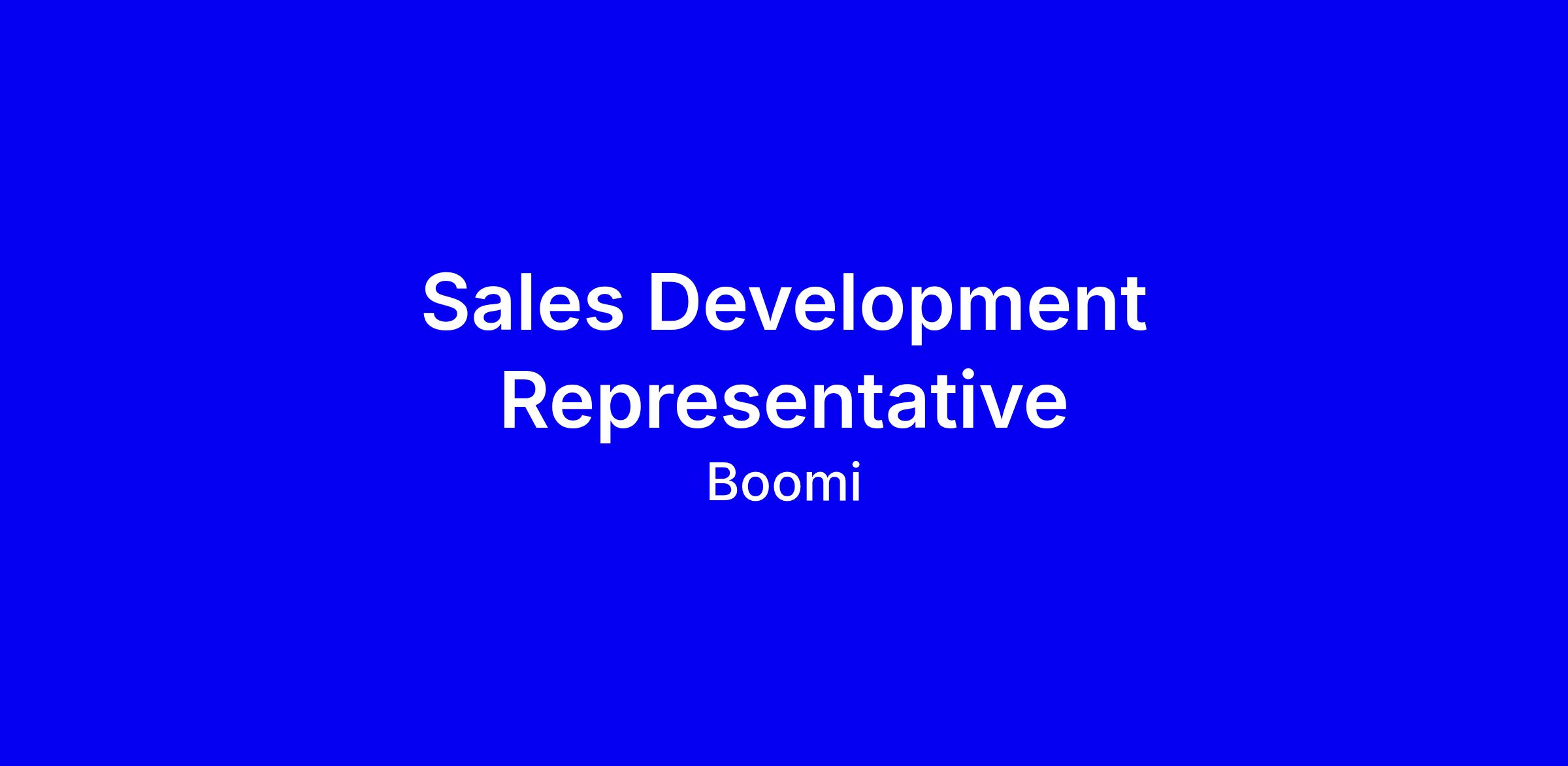 Boomi offers a fast-paced, international, and innovative environment where you will have the opportunity to bring your ideas, have full responsibility for your activities, and use the right tools, resources, and outstanding management to sell business application solutions and take your career to the next level!
