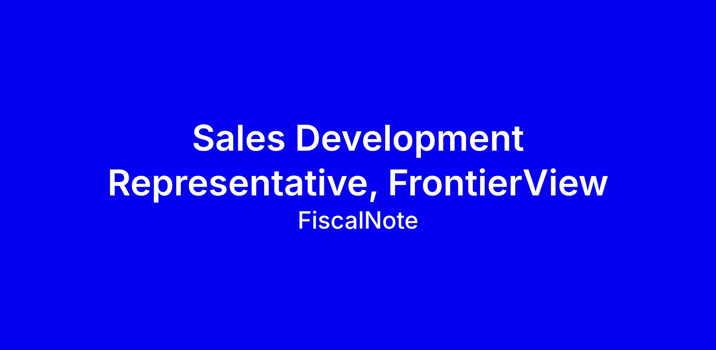 About the PositionHighly creative and intelligent, our Sales Development Representatives identify the value add of FrontierView products to prospective organizations. Through effective listening and market research, our Sales Development Representatives will tactfully leverage all manners of communication to get our solutions and products in front of senior executives running the largest companies in the world. SDRs partner with FrontierView Outside Sales Representatives to develop an account targeting strategy to bring in new clients for FrontierView.FiscalNote SDRs have a level of critical thinking and intellectual curiosity far exceeding that of a generic SaaS salesperson. Our Sales Development Representatives hustle and thrive on driving high growth for a fast-paced technology company. Our training and development program enables SDRs with the necessary skills that will accelerate their future Sales and Client Service careers. Our team is highly collaborative, fun, and supportive of each other's goals and broader organizational goals.About the Business Development Team The Business Development Team at FrontierView is critical to the growth of our business. Our mission is to help our clients identify challenges and provide innovative, data-driven, and practical solutions to better navigate risk, opportunity, and uncertainty. We leverage our market intelligence and advisory solutions to empower people and organizations with the right information at the right time. Our Business Development Team, both experienced and new professionals, gain opportunities for learning and professional development in a diverse and innovative culture, rooted in our company values and mission. About You Hungry. Curious. Unflappable. Intelligent. You view every phone call you make and every email you send as one more data point to guide you to understanding the quickest path to success. Because you communicate clearly and skillfully through both writing and speech, others always understand the context of your message. Your intellectual curiosity is one of your greatest assets and allows you to effectively interact with people from all walks of life. Able to think quickly on your feet, you handle any situation with extraordinary tact and composure.#LI-HR1