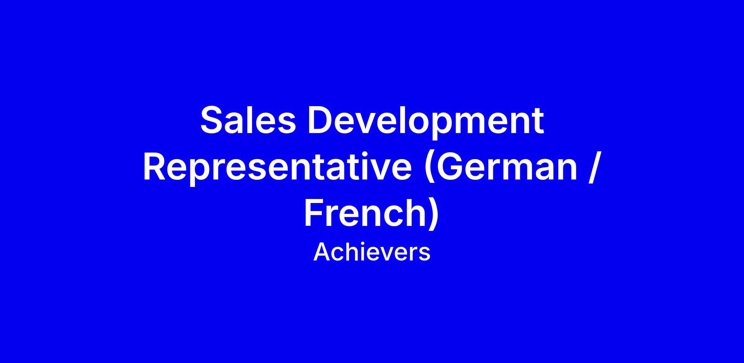 Achievers is hiring a German or French speaking Sales Development Representative to join their London based onsite sales team. You will run your own strategy to connect with HR leaders at large enterprises, qualify meetings for Account Executives, and help fill the pipeline through creative multi channel outreach while collaborating with experienced teammates. The ideal candidate has 1 year SDR experience, is fluent in French or German, thrives in a fast paced environment, writes compelling outbound emails, and has familiarity with Salesforce or Outreach or Salesloft. Demonstrated ambition to become a closing rep within 24 to 36 months is valued. The application includes a 2 minute video introduction; keep it concise, tell your story, explain what motivates you in sales, and share a challenging situation you overcame, be yourself.