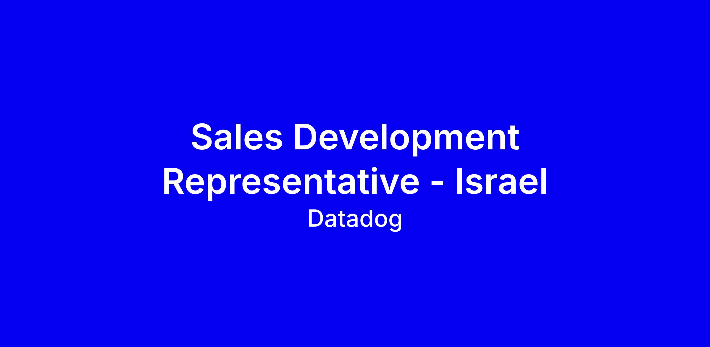 Datadog is hiring a Sales Development Representative for Israel to prospect, qualify, and generate leads, collaborating with cross-functional teams to drive early-stage opportunities and reveal customer needs, with outbound calls and emails, discovery meetings, and strategies to acquire new business. The role emphasizes learning MEDDIC and Command of the Message, and ongoing growth into sales. You should be fluent in Hebrew, motivated to build a sales career, curious, collaborative, and able to handle rejection while maintaining strong written and verbal communication. Datadog values diversity, offers stock equity and ESPP, mentorship, and a flexible hybrid culture; apply even if you don’t meet every bullet.