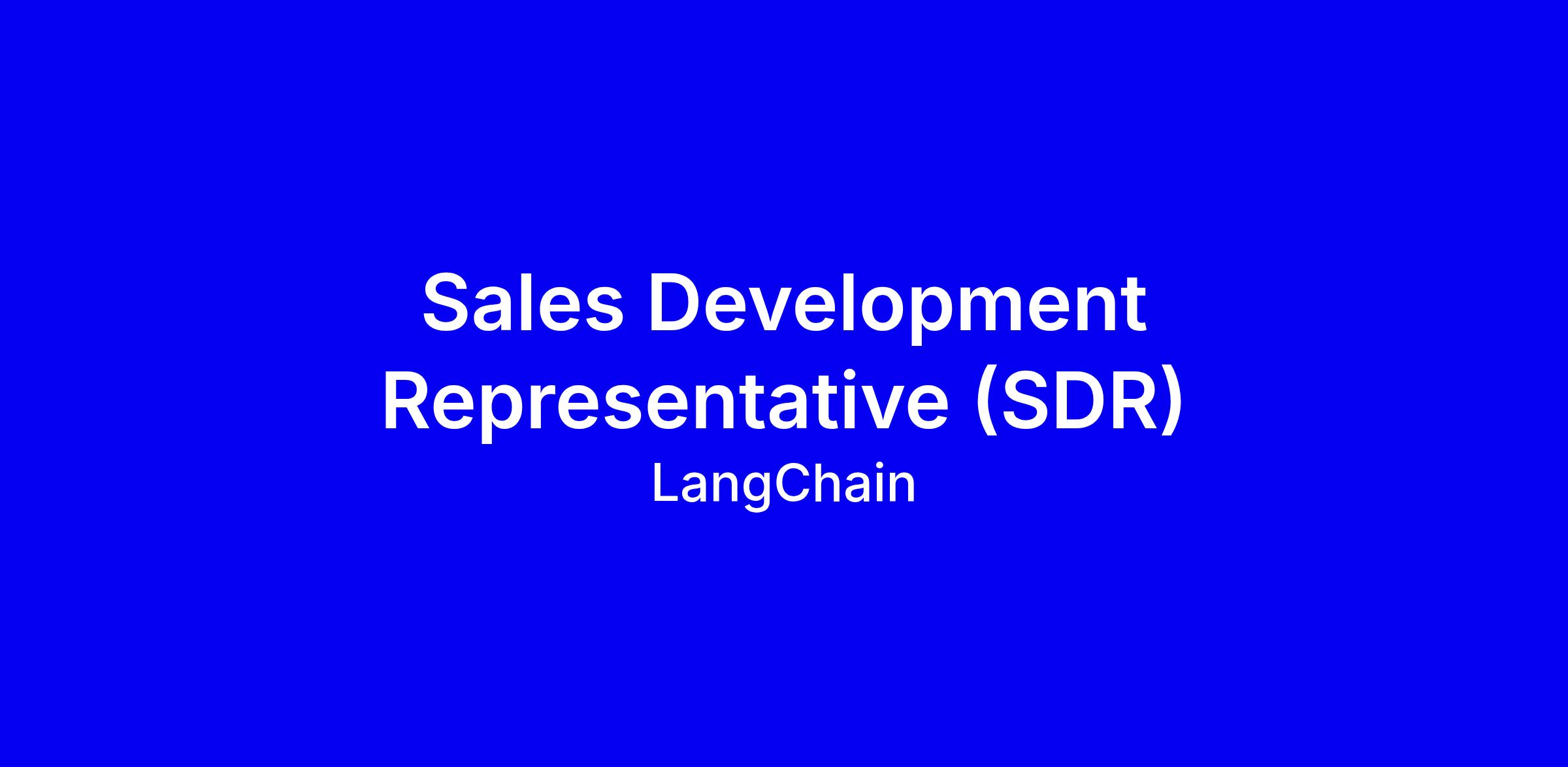We’re hiring Sales Development Representatives to join our founding SDR team and help shape the future of how companies adopt LangChain. As part of our SDR team, you’ll turn high inbound interest and targeted outbound demand into qualified opportunities and create an exceptional first-touch experiences for prospects.