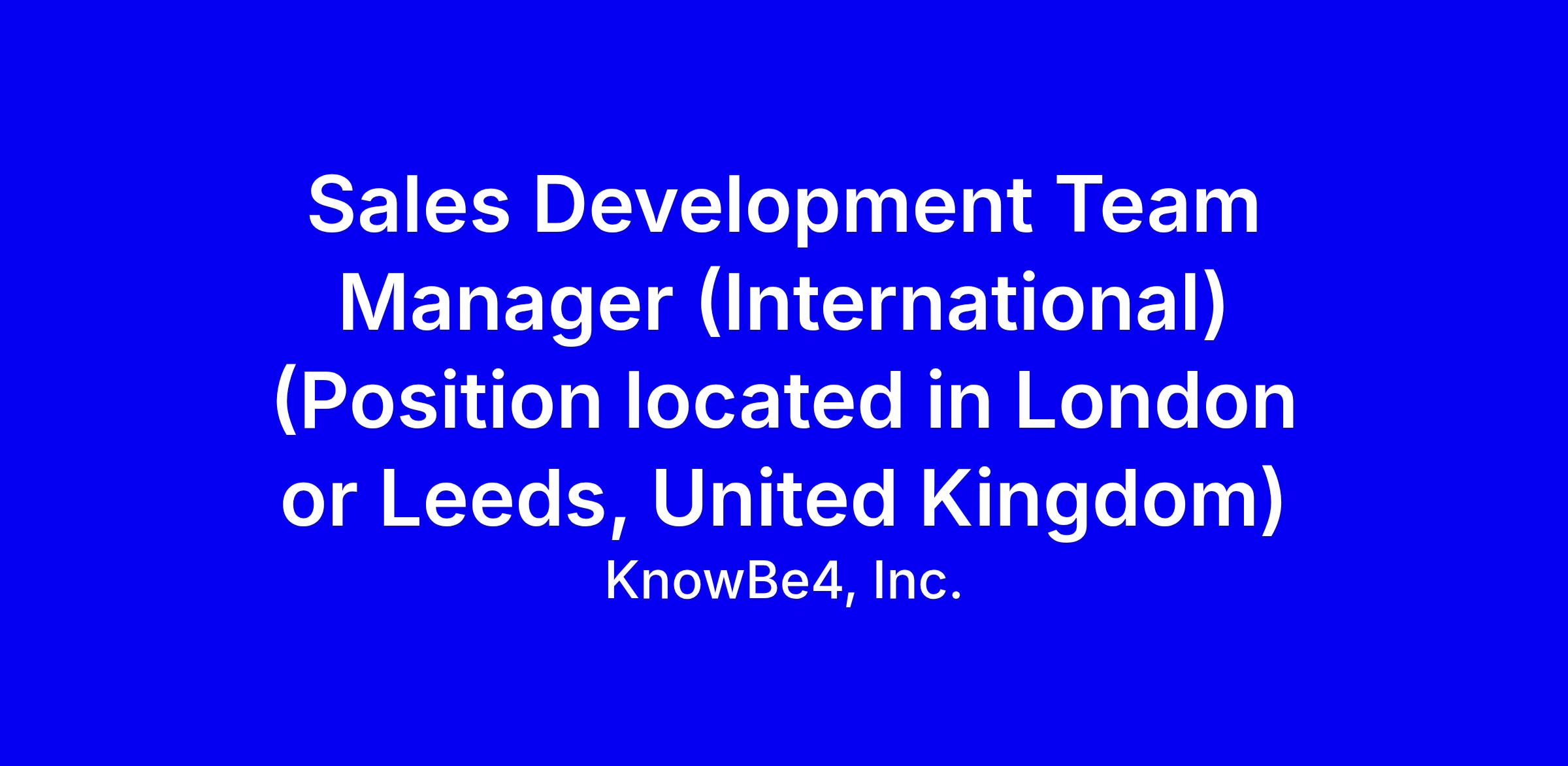 KnowBe4 is seeking a Sales Development Team Manager International to lead a Direct and Channel SDR team in a hybrid role based in London or Leeds, guiding prospecting, discovery, and handoffs to Sales. You will mentor SDRs, monitor metrics, refine outreach scripts, and align with the Global Sales Director while supporting partner escalations. Requirements include at least one year of direct or channel experience, one year of leadership, strong communication and organization, and a persistent, engaging outreach style; familiarity with Gmail, Google Docs or MS Office and IT security context is a plus. To apply, submit an English resume highlighting leadership impact and measurable pipeline results, plus a concise cover note showing fit with KnowBe4 values.