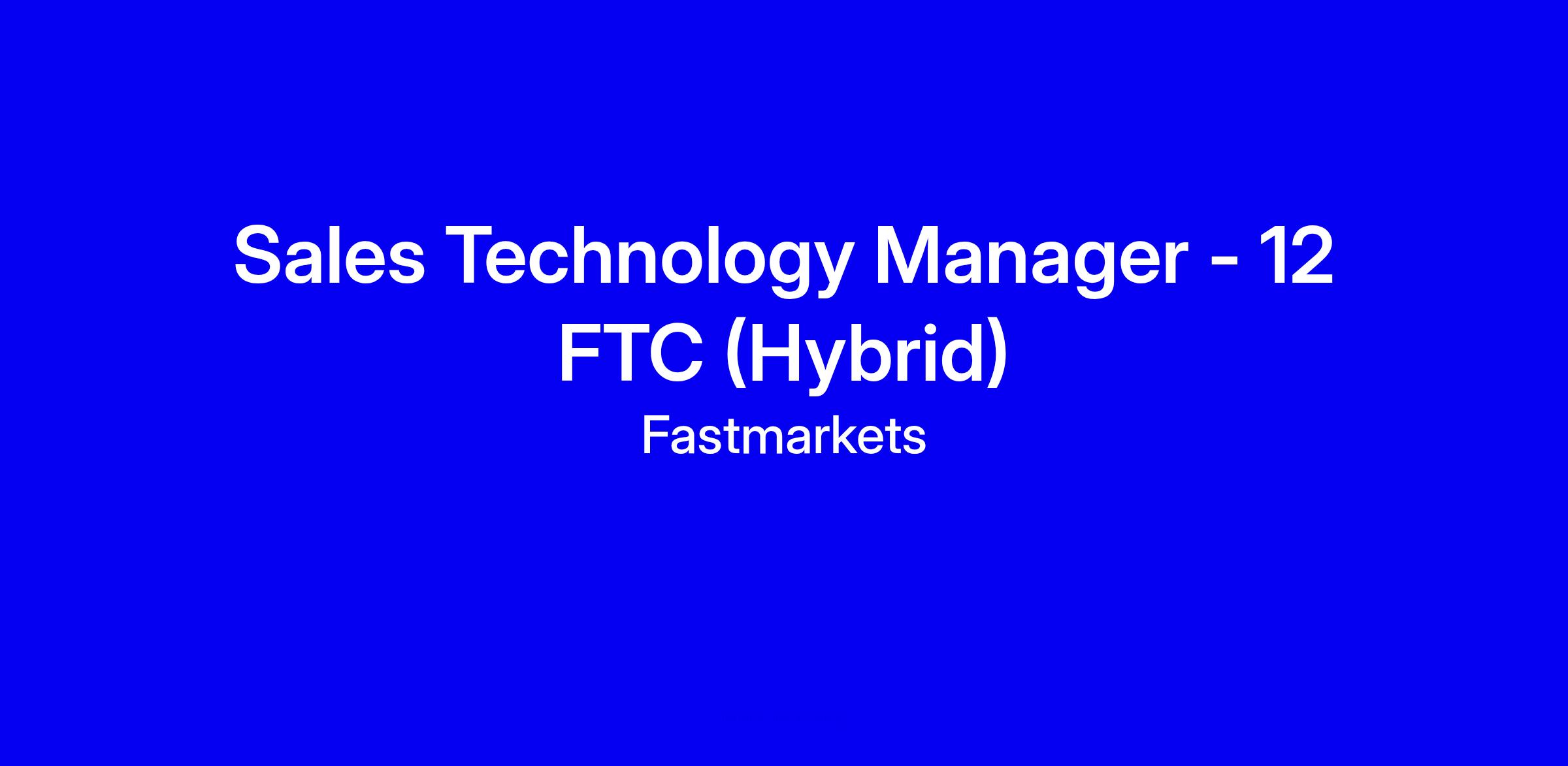 Fastmarkets is hiring a Sales Technology Manager on a 12 month fixed term contract in London with hybrid working. In Revenue Operations, the role partners with senior leaders to optimize the sales tech stack, with Salesforce at the core, to drive adoption and efficient workflows for the Events business. You will own Salesforce and integrations, ensure data governance, train users and coordinate across Commercial, CRM and IT teams. Essentials: deep Salesforce expertise, hands on with integrations, and a proven track record of driving tool adoption. Desirable: SaaS or B2B experience, Martech exposure. To apply, tailor your CV with quantified outcomes and complete the application form thoroughly, aligning with Fastmarkets values.