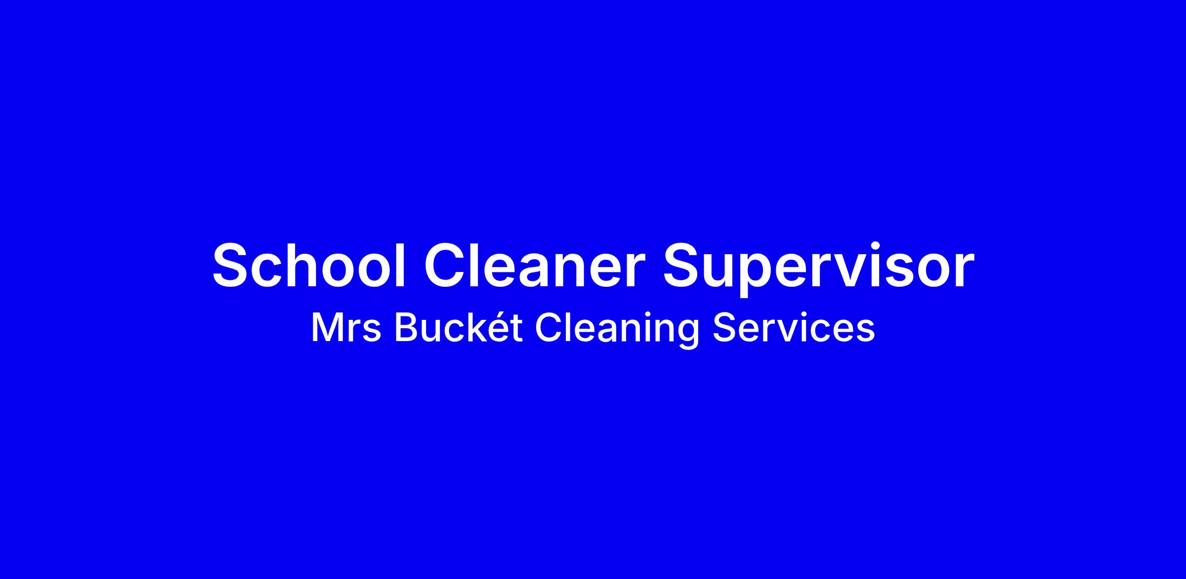 Mrs Buckét Cleaning Services is hiring a part-time School Cleaner Supervisor to oversee site management in Wales, Monday to Friday 15:30 to 18:00 (12.5 hours weekly). You will supervise cleaning and facilities operations, conduct inspections, ensure health and safety compliance, and coordinate with staff, visitors and contractors, including emergency readiness. The ideal candidate is highly organised, a clear communicator, and able to work independently or with a team, with experience in cleaning or facilities supervision and knowledge of safety standards. Benefits include extensive training, uniform, parking, and a supportive Head Office. To apply, tailor your CV to highlight HSE skills, scheduling, and problem solving, reflect our values of People, Passion, Reliability, High Standards and Industry Leading Experts, and confirm your availability and right to work.