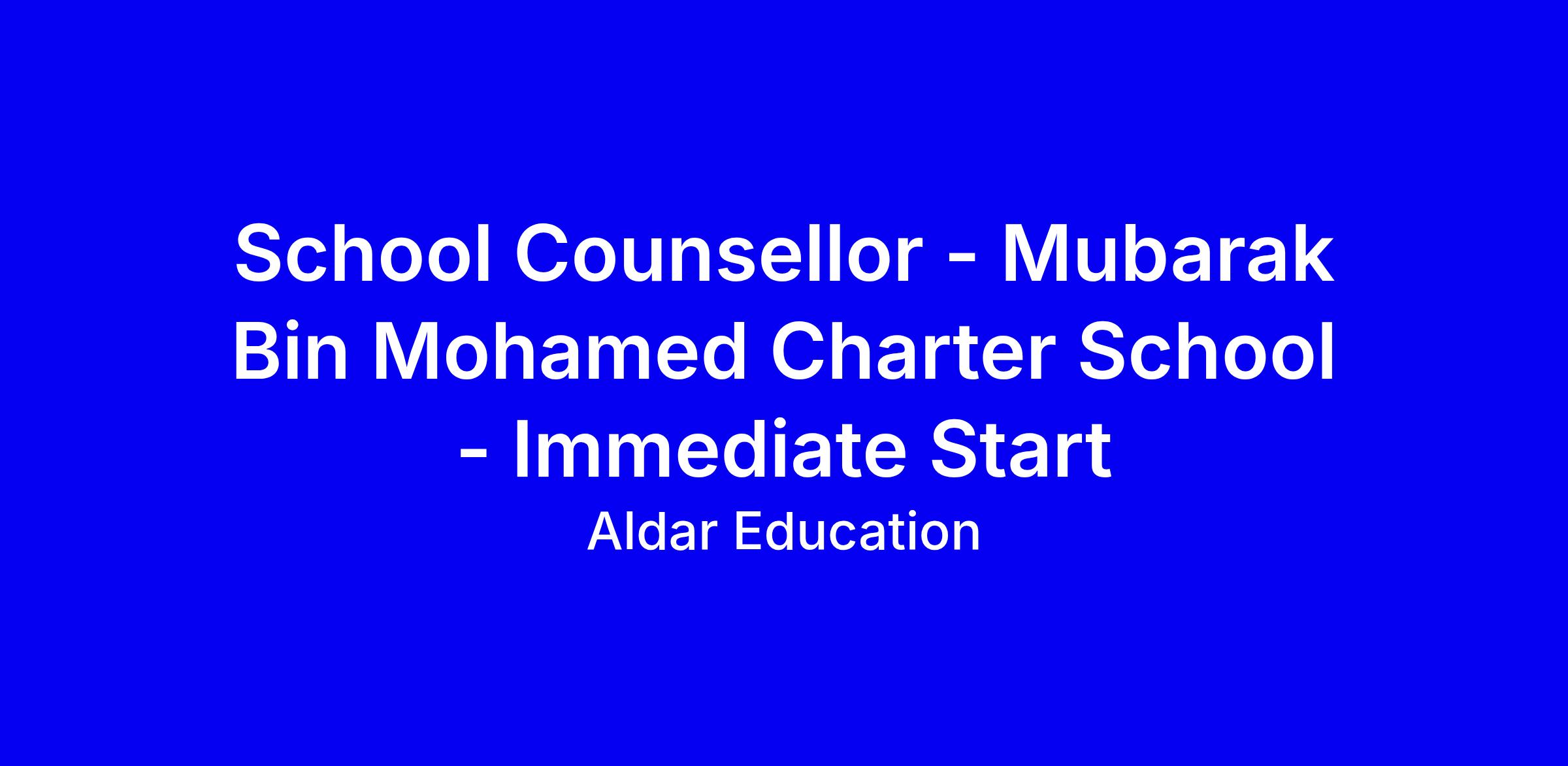 Aldar Education is currently seeking a School Counsellor for Mubarak Bin Mohammed Charter School C1 for an immediate start (Mar 2026).