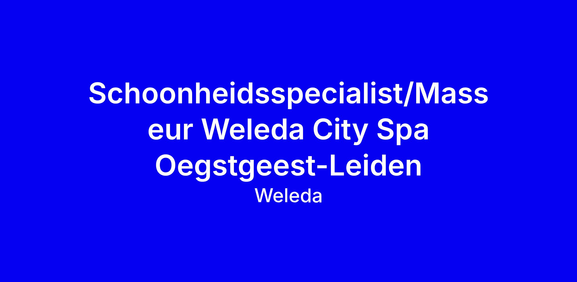 Wij zoeken bij Weleda City Spa in Oegstgeest-Leiden een Schoonheidsspecialist/Masseur (dienstverband of zzp) die gezichtsbehandelingen en massages levert met 100% natuurlijke Weleda-producten en klanten naar balans begeleidt. Je werkt binnen een team, beheert samen met collega’s de agenda en zorgt voor een schone werkomgeving; de inwerkperiode biedt training in onze werkwijze en productkennis. Vereisten: afgeronde schoonheidsspecialist en aanvullende masseursopleiding, minimaal 1 jaar ervaring, affiniteit met commercie, leergierigheid, hands-on en discreet; VOG en beschikbaarheid voor avonden/weekenden; proefbehandeling hoort bij de sollicitatie. Aanbod: duurzame cultuur, 25% weekendtoeslag, 50% korting op producten, 20% korting op behandelingen. Solliciteer via de link, pas cv en motivatie aan op Weleda waarden en het city spa concept, benadruk klantgerichtheid en verkoopervaring.