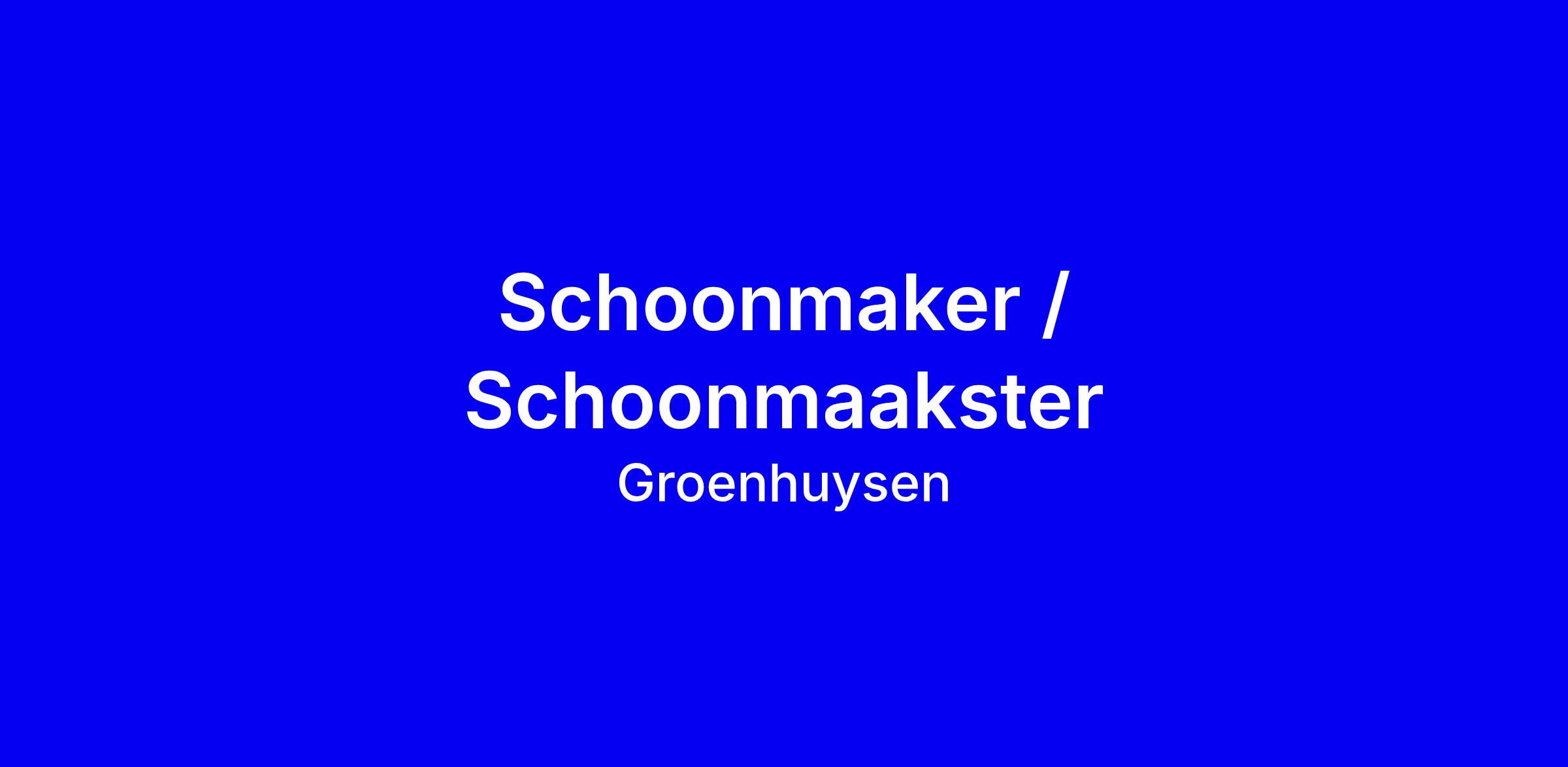 Groenhuysen is op zoek naar een nieuwe Schoonmaker / Schoonmaakster. In deze zeer gewaardeerde functie ben je verantwoordelijk voor schone en hygiënische woningen, leefruimtes, openbare ruimtes en kantoren.