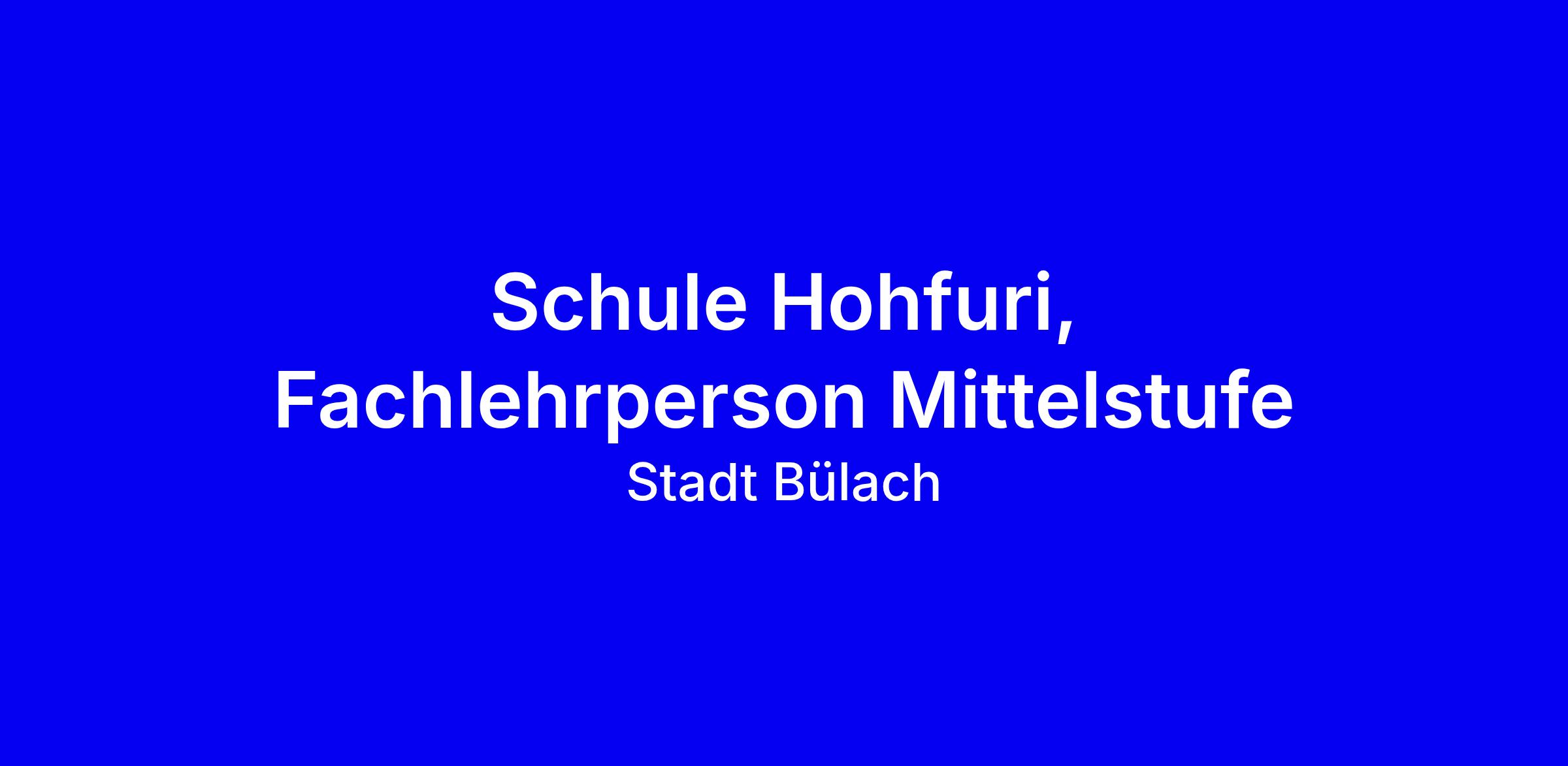 Schule Hohfuri sucht ab 1. August 2026 eine initiative Fachlehrperson Mittelstufe mit Freude am Französischunterricht und einem schweizerisch anerkannten Lehrdiplom Primarstufe. Die Vollzeitstelle ist vor Ort in Bülach, mit kurzer Pendelstrecke vom Bahnhof. Sie arbeiten eng mit IF, DaZ und weiteren Fachstellen zusammen und profitieren von einer unterstützenden, offenen Schulleitung. Entscheidend sind Teamfähigkeit, hoher Unterrichtsstandard, Respekt und die Bereitschaft zur Mitgestaltung unserer Schule. Wir bieten eine vielfältige Kultur, spannende Projekte, Rituale, Waldnähe und nachhaltige Schulentwicklung. Bewerben Sie sich mit klarer Motivation, relevanter Erfahrung in Französisch und DaZ sowie Referenzen; Fragen gern an die Schulleitung.