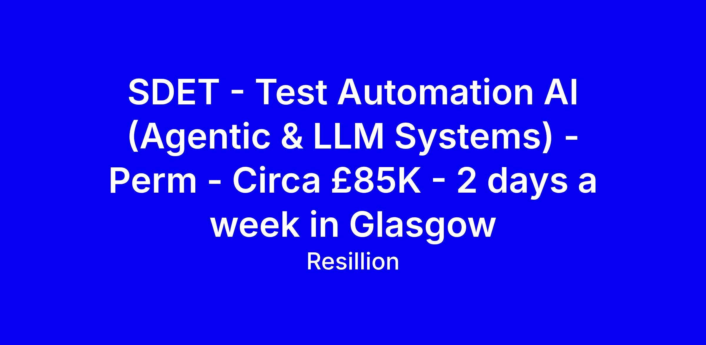 SDET - Test Automation AI (Agentic & LLM Systems) - Perm - Circa £85K - 2 days a week in Glasgow