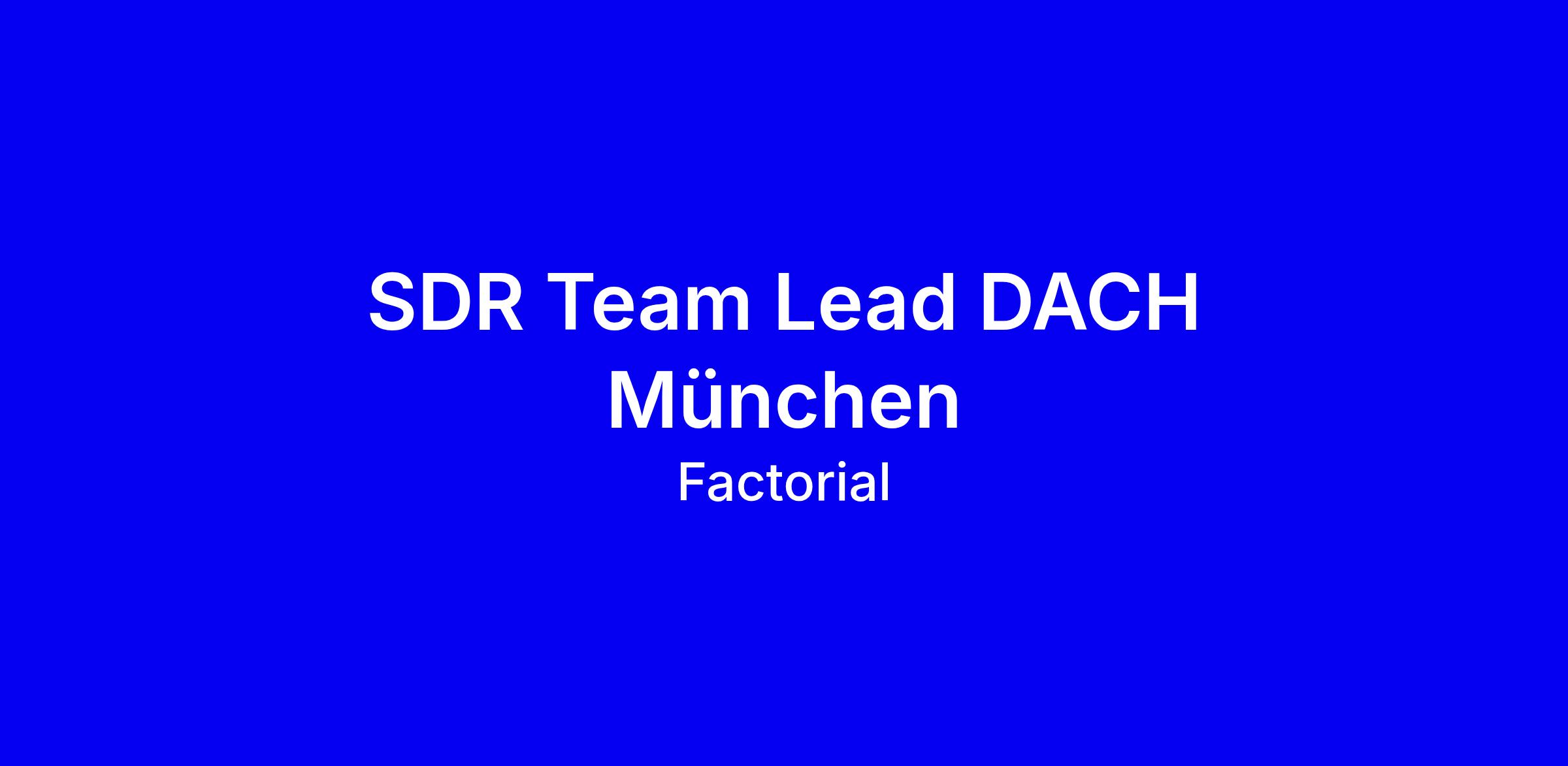 Factorial sucht in München einen SDR Team Lead für die DACH-Expansion, der ein leistungsstarkes SDR-Team aufbaut, entwickelt und führt und die Pipeline-Qualität, Lead-Generierung sowie Zielerreichung über KPIs sicherstellt. Du gestaltest Strukturen am Standort mit, arbeitest eng mit Sales, Marketing, Sales Ops und Partner Management zusammen und trägst Verantwortung für MRR- und Demo-Ziele in einem dynamischen Scale-up. Voraussetzungen: Mindestens 2 Jahre B2B-SaaS-Vertrieb mit Teamführung, starke Datenanalyse, exzellente Kommunikation, Deutsch Muttersprachler und sehr gutes Englisch. Tipp: Betone messbare Erfolge, Führungs- und Coaching-Kompetenz, cross-funktionale Projekte und deine Bereitschaft zu flexibler Arbeit und Mobility.